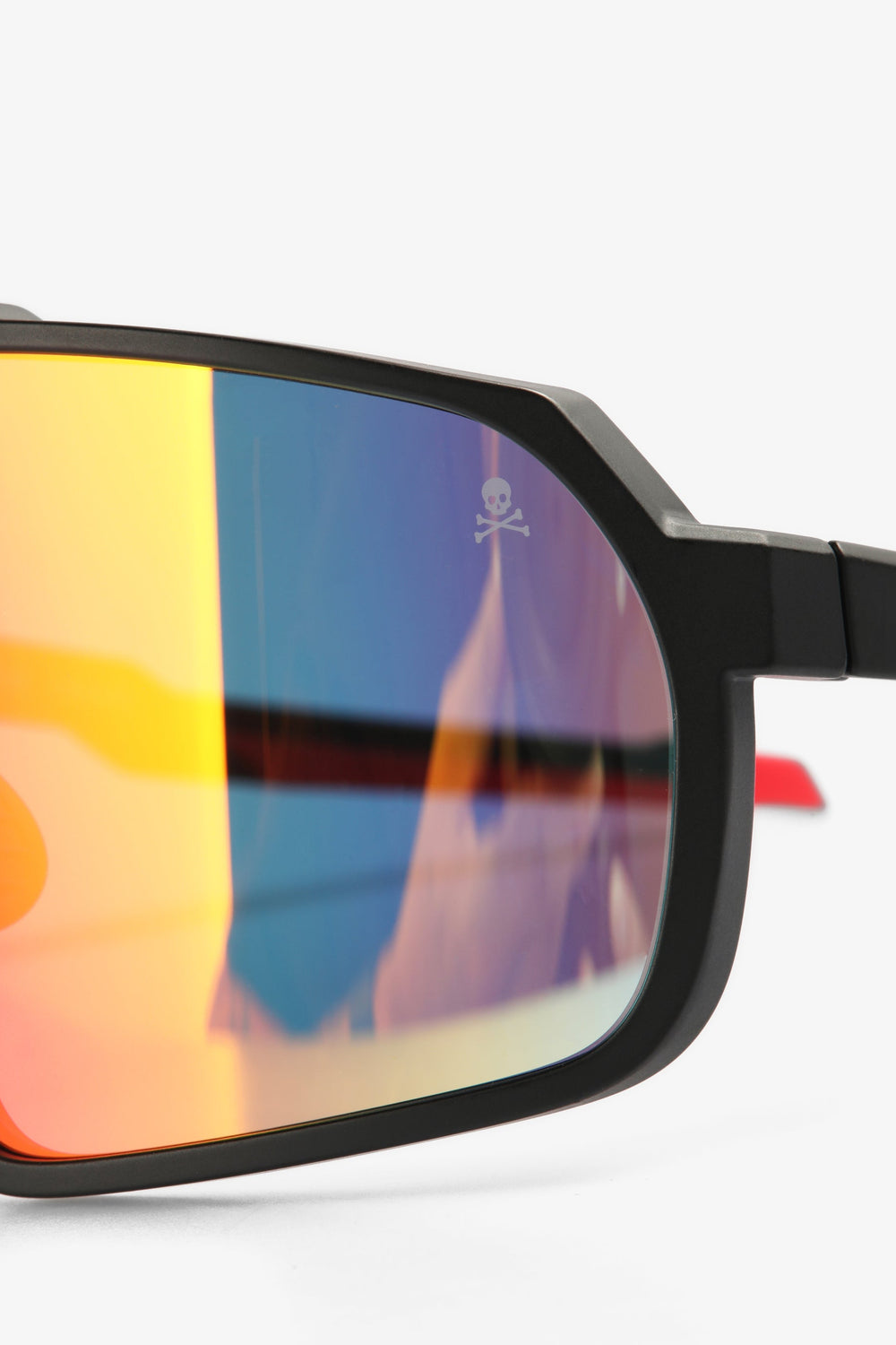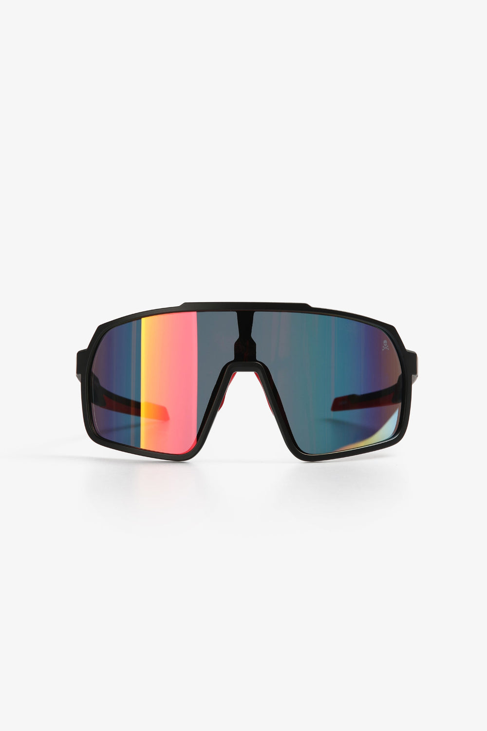Ultralight sports glasses with a panoramic screen made of TR19. Mirrored lenses with UV400 protection. Grip against slipping.