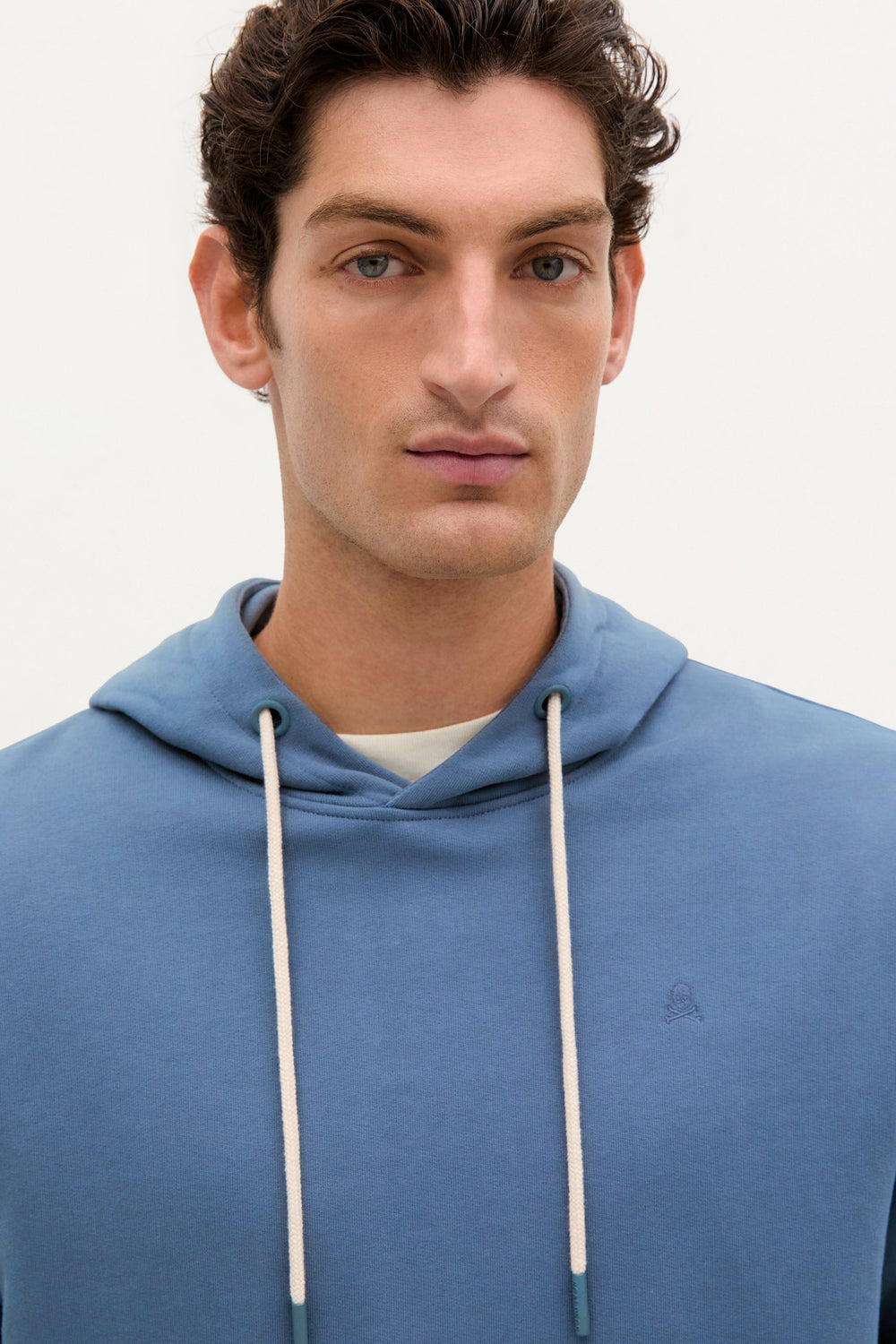 Hoodie made of 100% BCI cotton. Regular fit, adjustable hood and long sleeves. Pouch pocket and matching embroidered skull.
