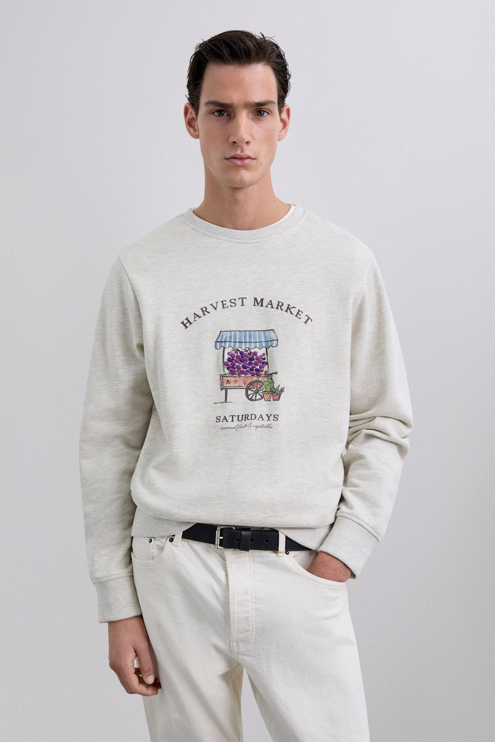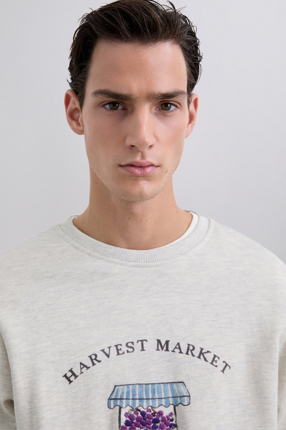 Sudadera confeccionada en tejido 100% algodón BCI. Corte Regular Fit, cuello redondo y manga larga terminada en rib. Print frontal en pecho con detalles bordados.