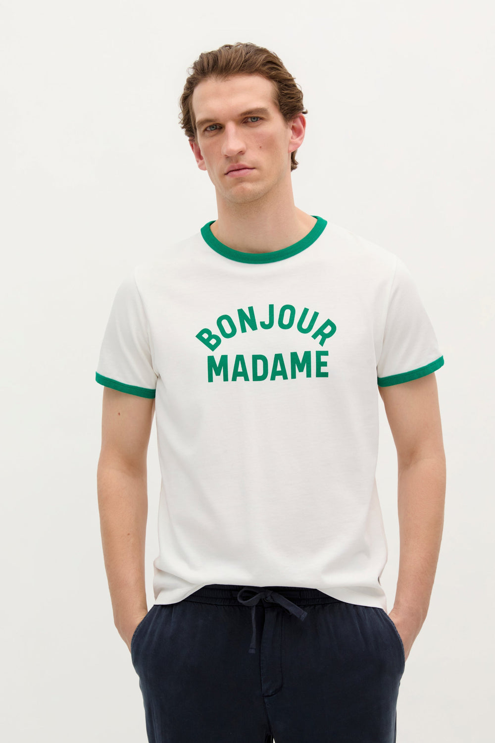 T-shirt made of 100% BCI cotton. Regular fit, round neck and short sleeves with contrast rib. Contrast print detail on the chest.