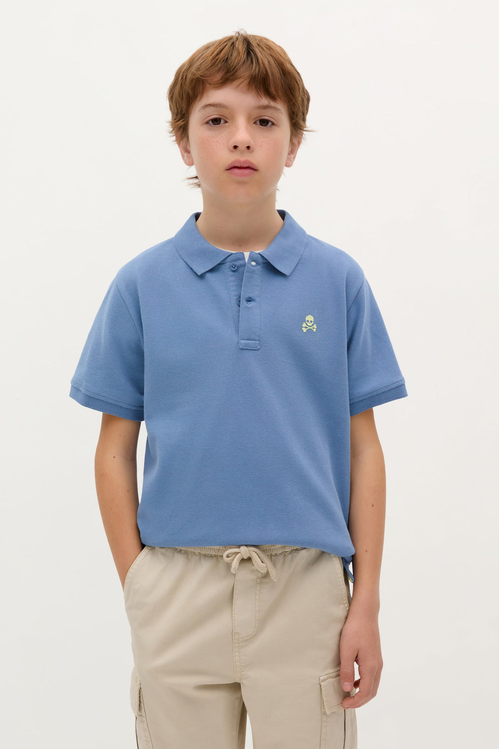 Polo shirt made of 100% cotton. Regular fit, classic collar and button fastening. Embroidered skull detail on the chest.
