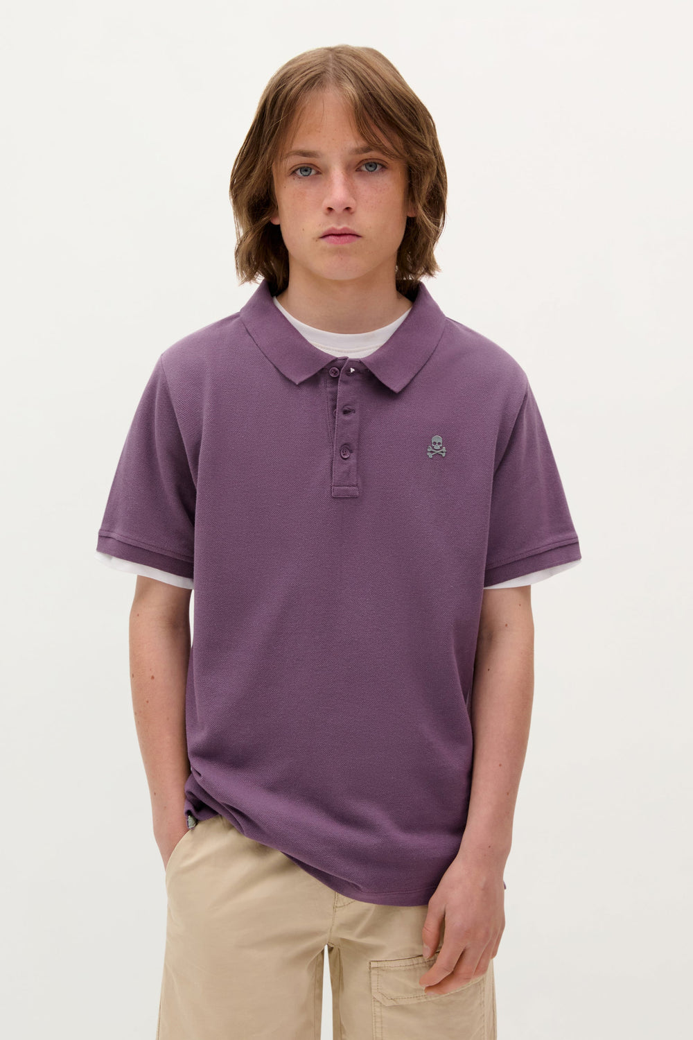 Polo shirt made of 100% cotton. Regular fit, classic collar and button fastening. Embroidered skull detail on the chest.