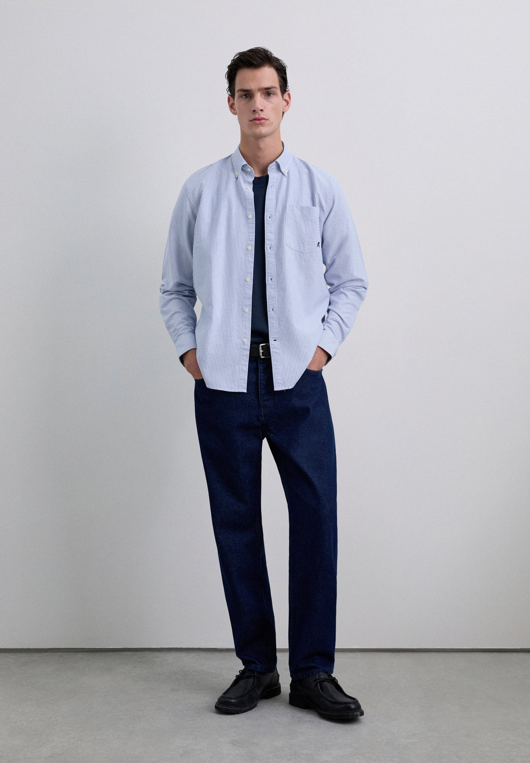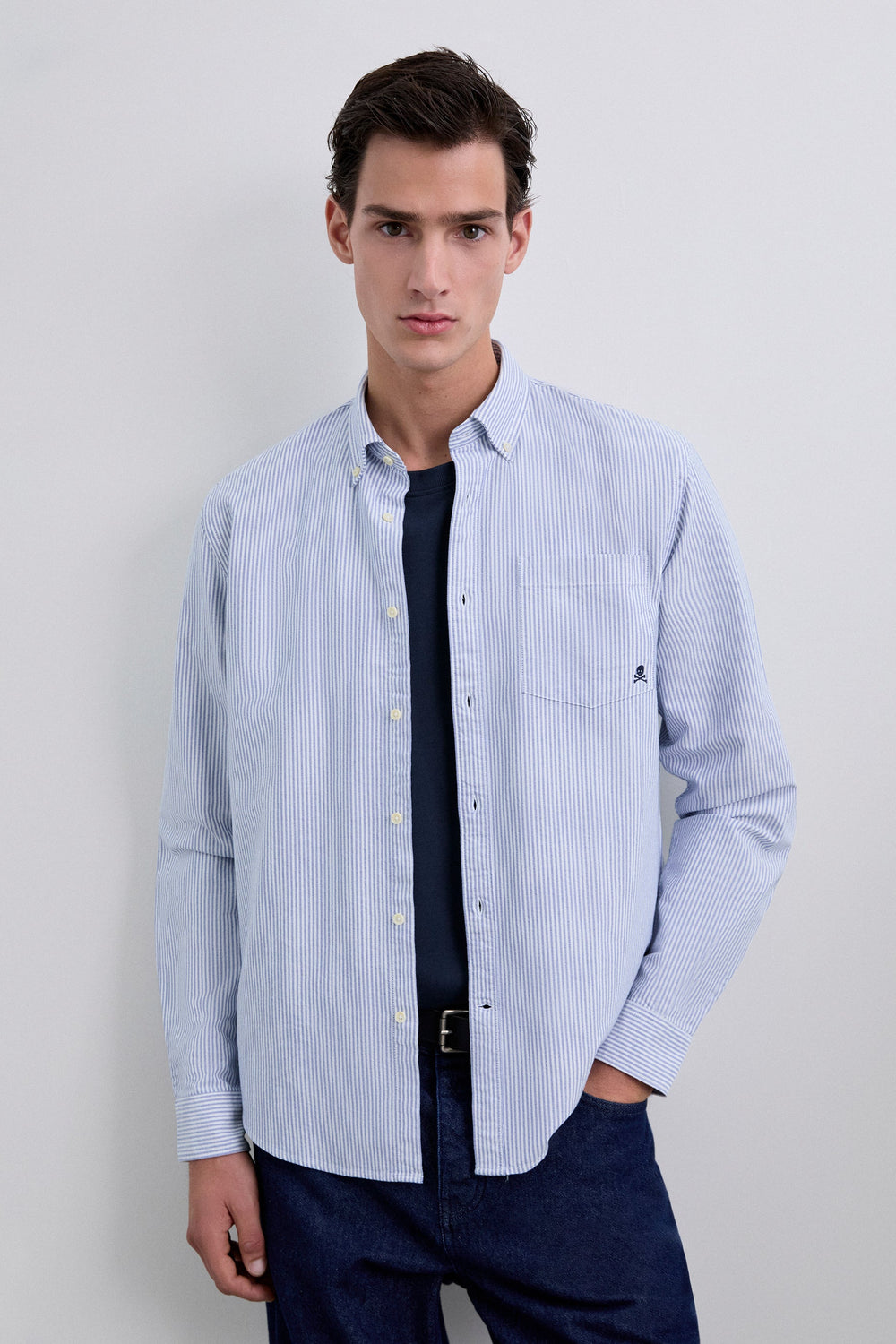 Shirt with matching embroidered skull detail on the chest. Made of 100% BCI cotton. Regular fit. Buttoned collar. Long sleeves with buttoned cuffs. Front button fastening. Patch pocket on the chest.