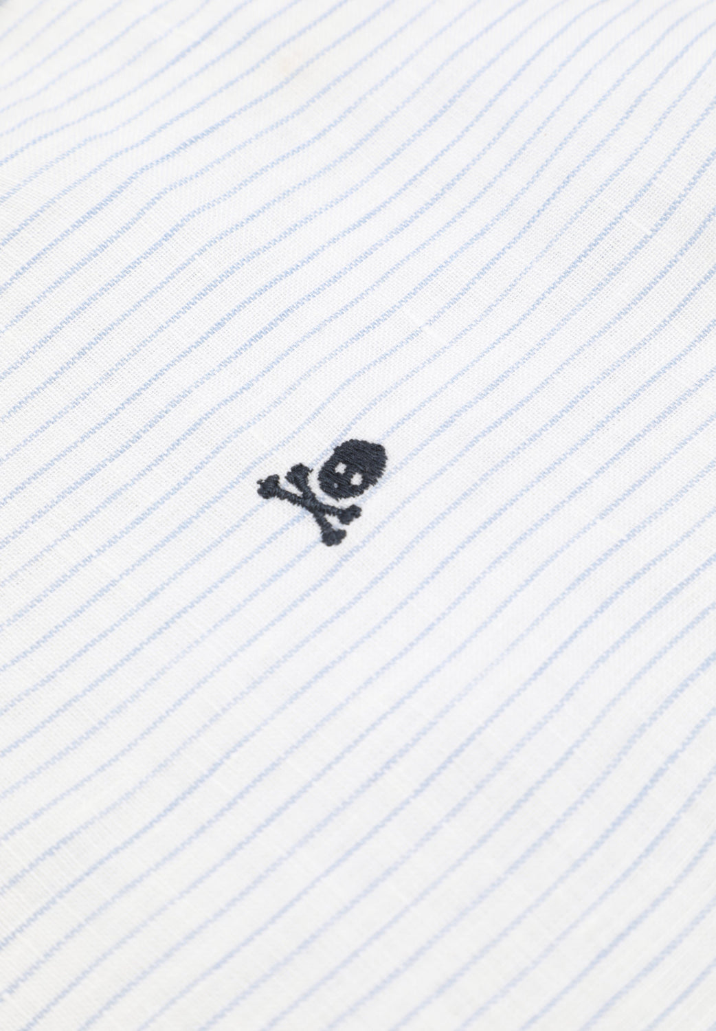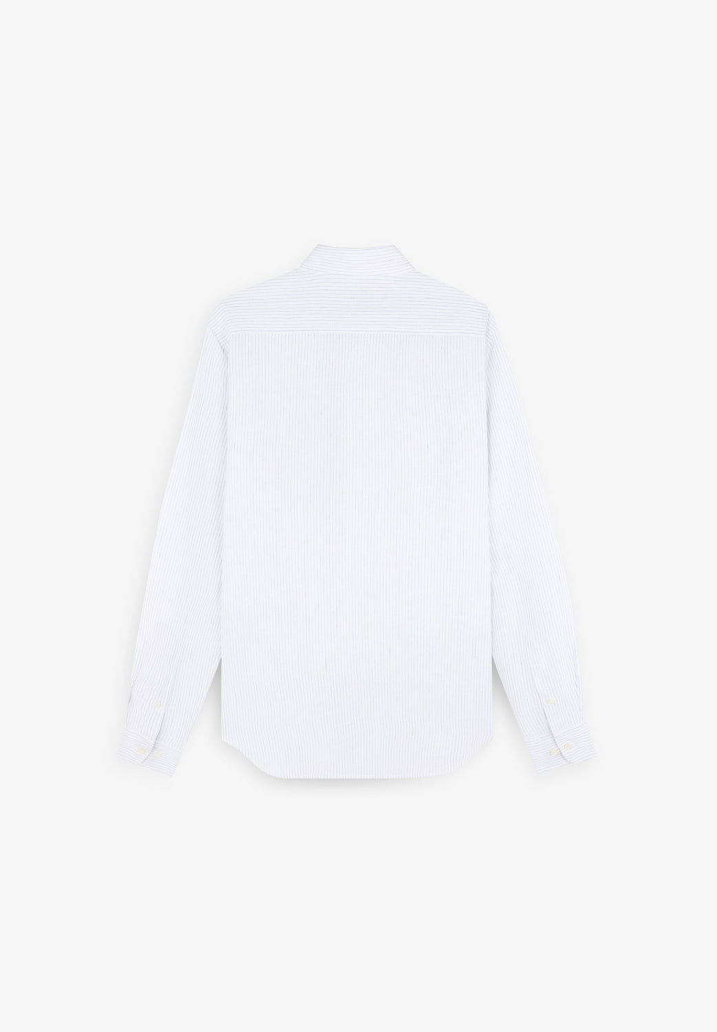 Shirt made of 100% linen fabric. Long sleeves. Front button fastening. Adjustable button fastening on the cuffs. Embroidered monogram on the front. Side logo label detail.