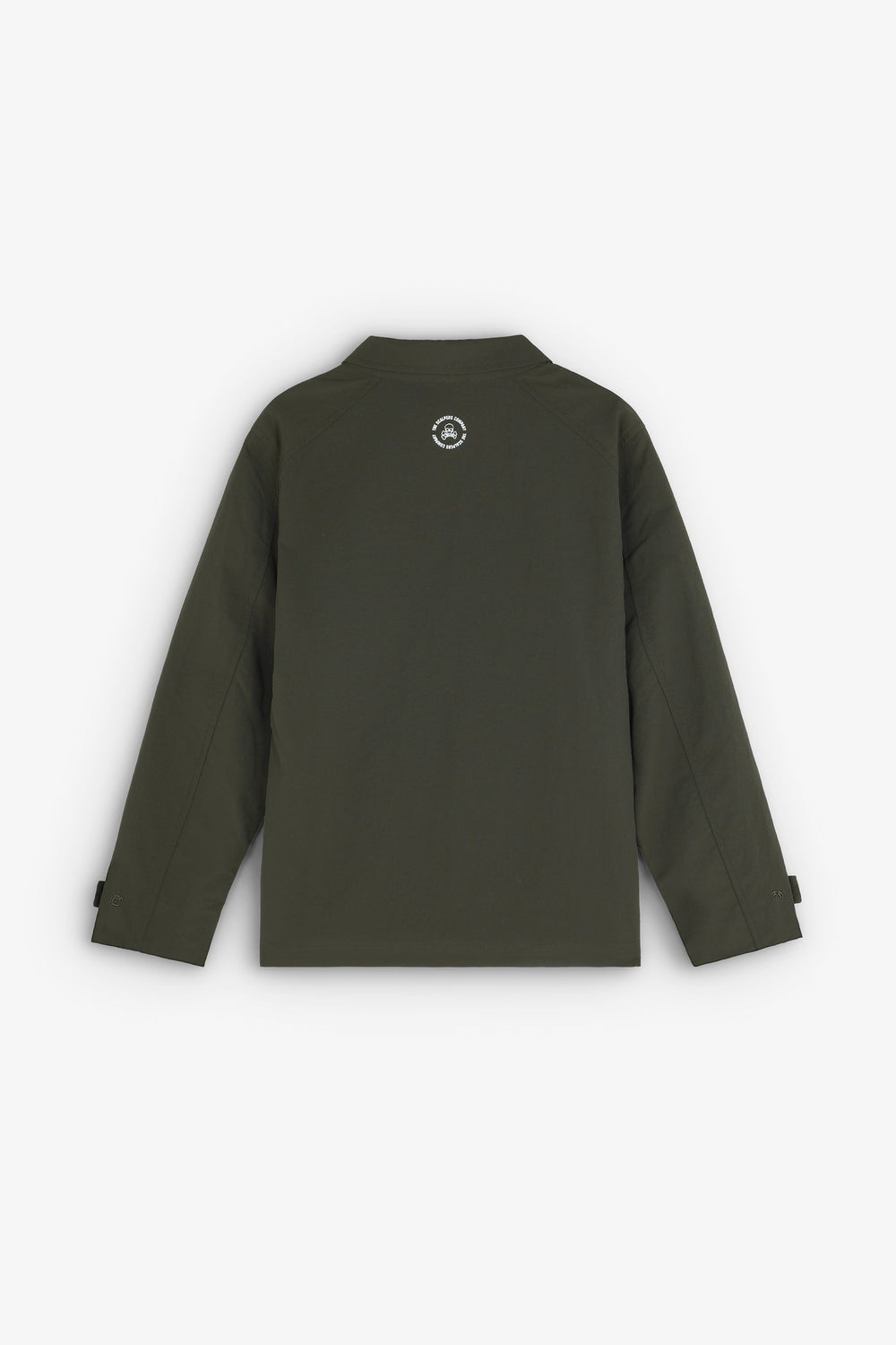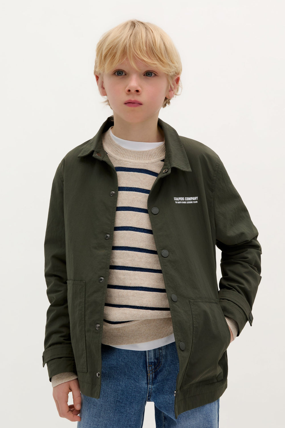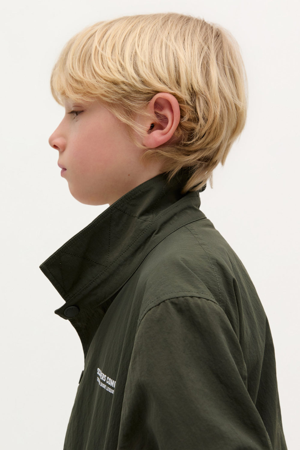 Lightweight technical jacket. Made of technical fabric Shirt collar. Regular Fit. Button fastening, lightweight lining and cuffs finished with snap buttons. Print on the chest and back. Pouch pockets with magnetic fastening.