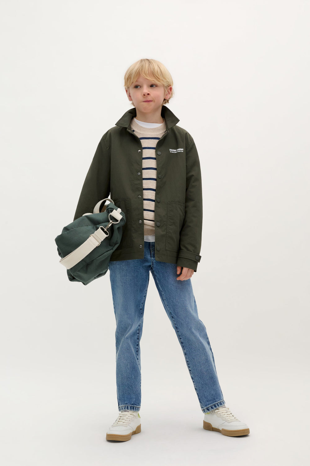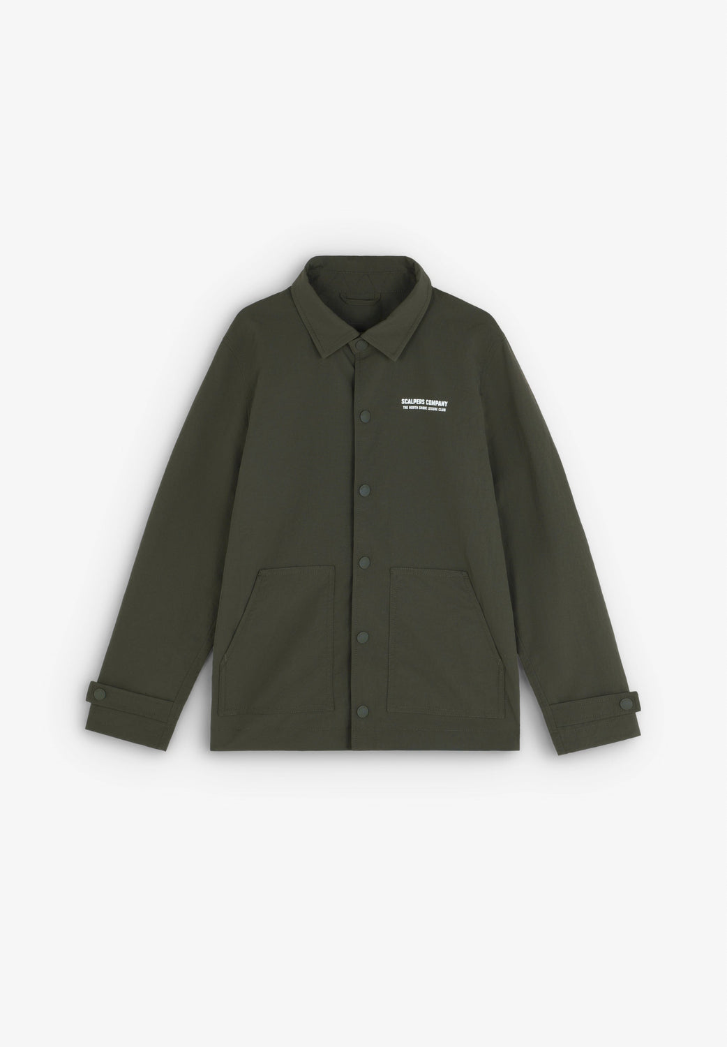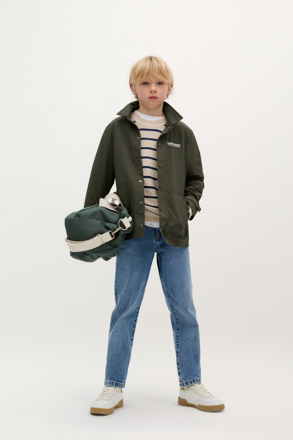 Lightweight technical jacket. Made of technical fabric Shirt collar. Regular Fit. Button fastening, lightweight lining and cuffs finished with snap buttons. Print on the chest and back. Pouch pockets with magnetic fastening.