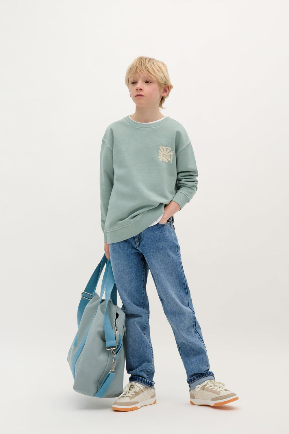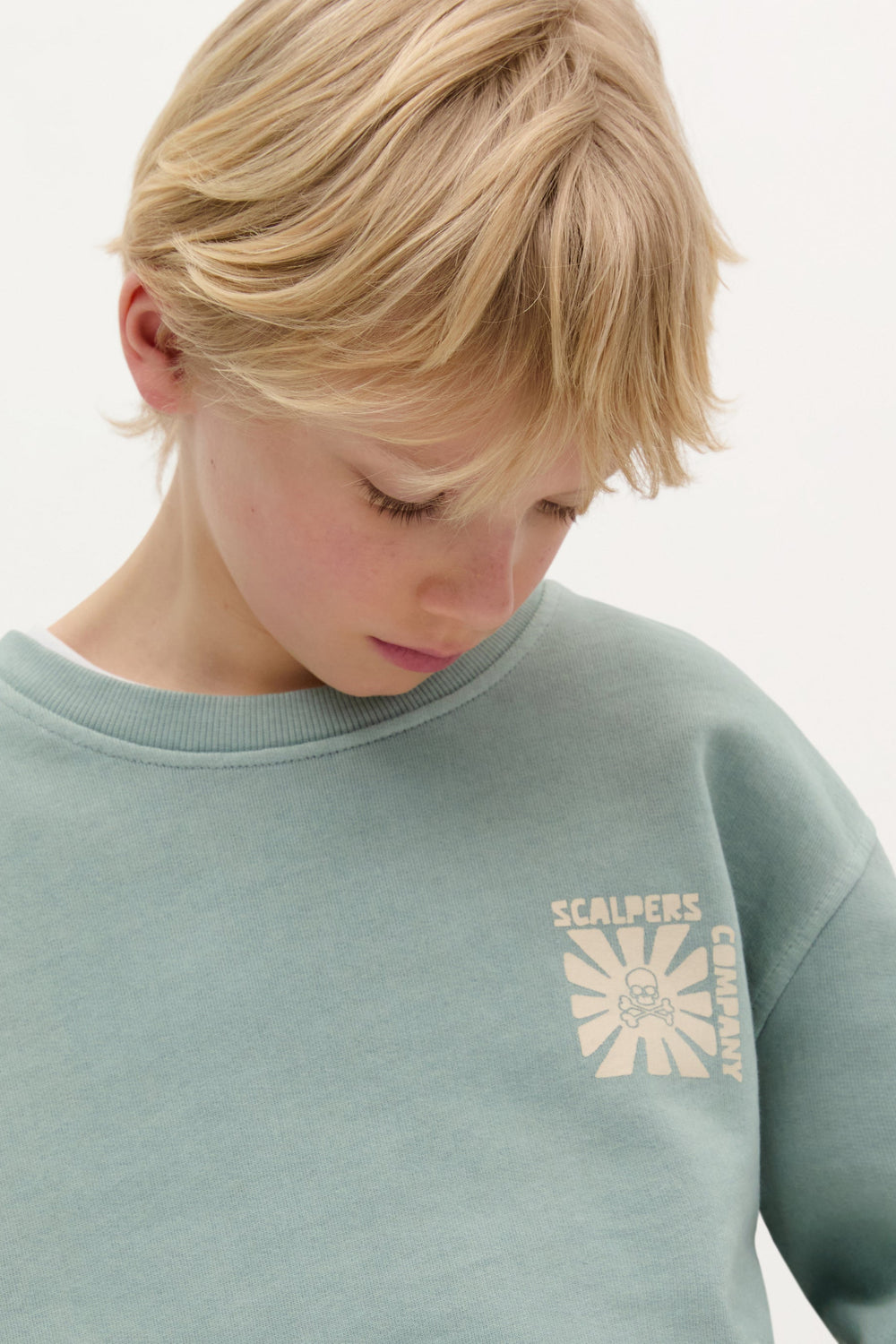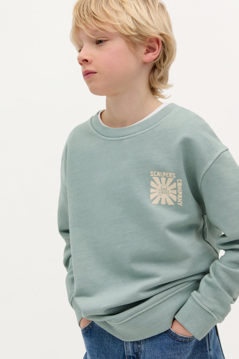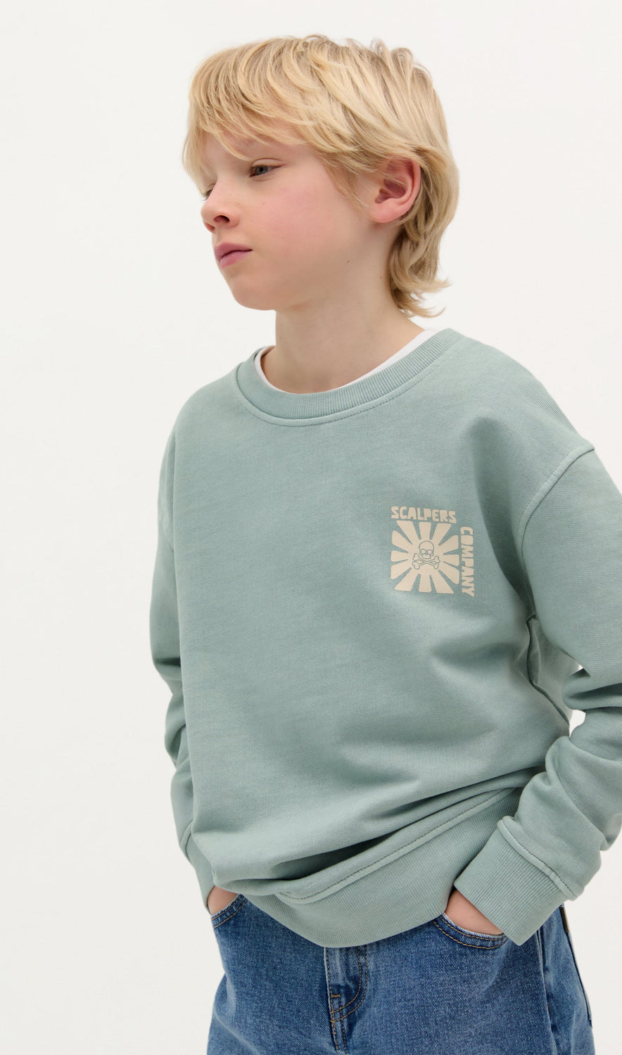 Faded effect sweatshirt with front and back high-density print. Made of 100% BCI cotton. Relaxed fit. Round neck. Long sleeves.