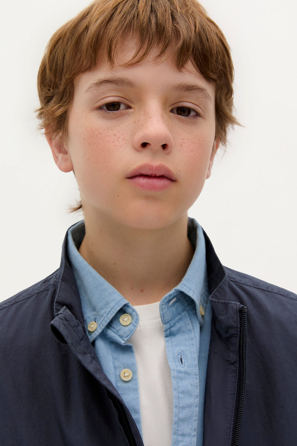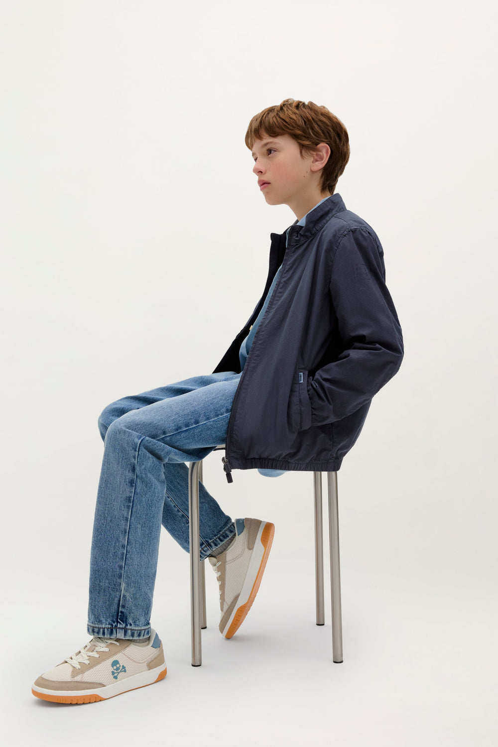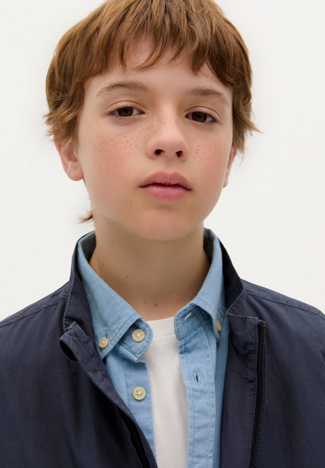 Lightweight faded jacket. Made of 100% BCI cotton. Regular fit. Lapel collar. Zip fastening. Long sleeves with elastic cuffs. Piped slash pockets at the sides.