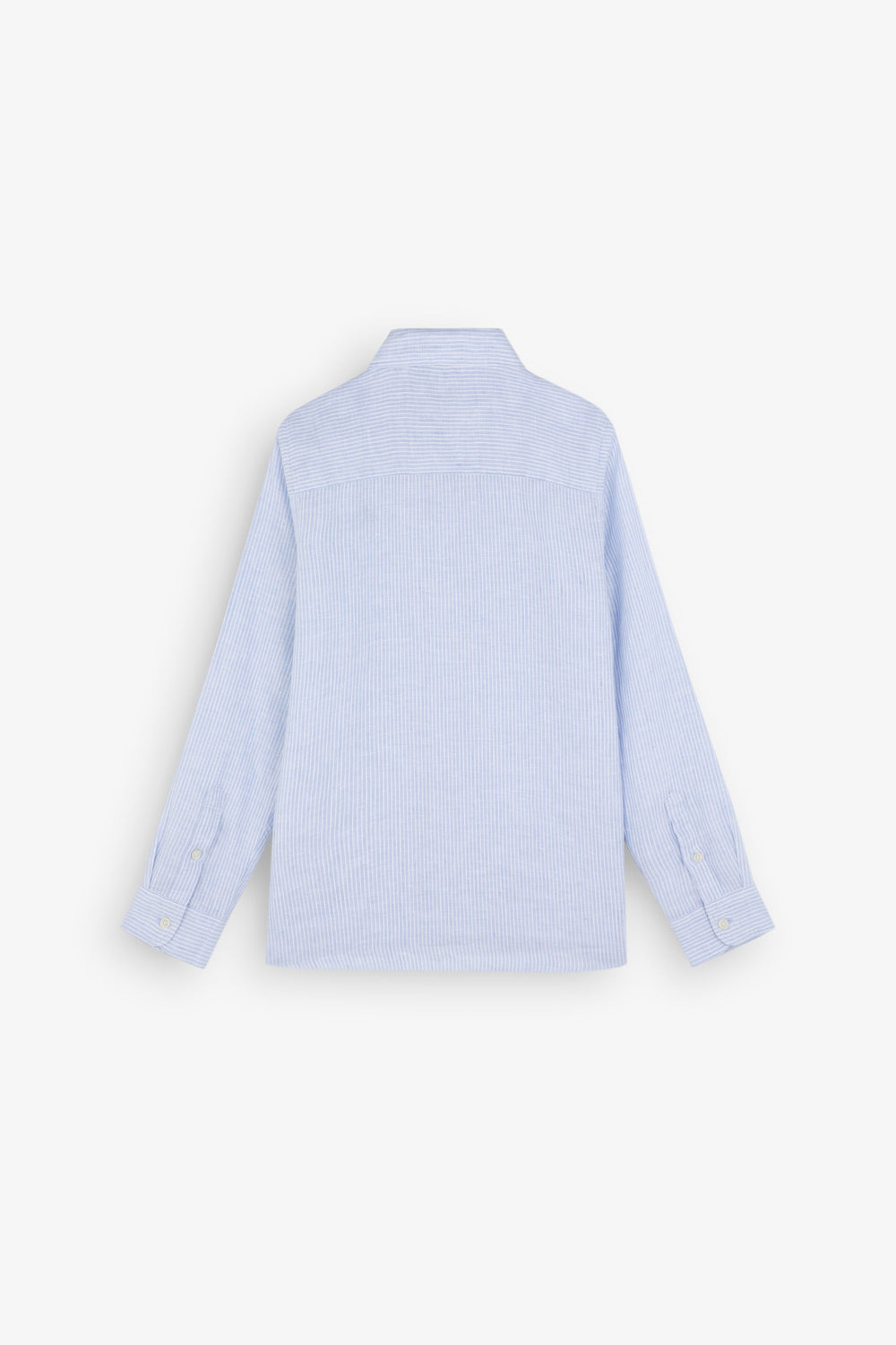 Shirt made of 100% linen with striped print. Regular fit, classic collar and long sleeves with button cuffs. Button fastening and embroidered skull logo on chest.