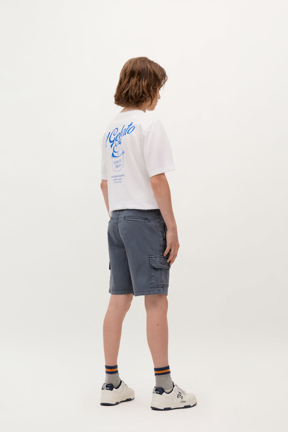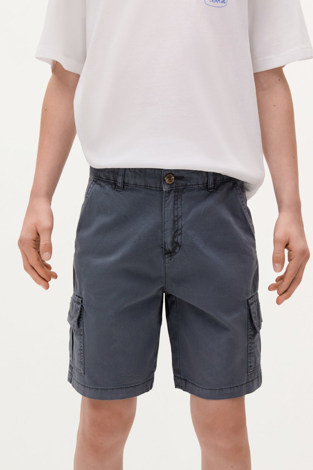 Bermuda shorts made of 100% organic BCI cotton. Front pockets, back patch pockets and flap pockets on sides. Front button fastening. Logo detail.