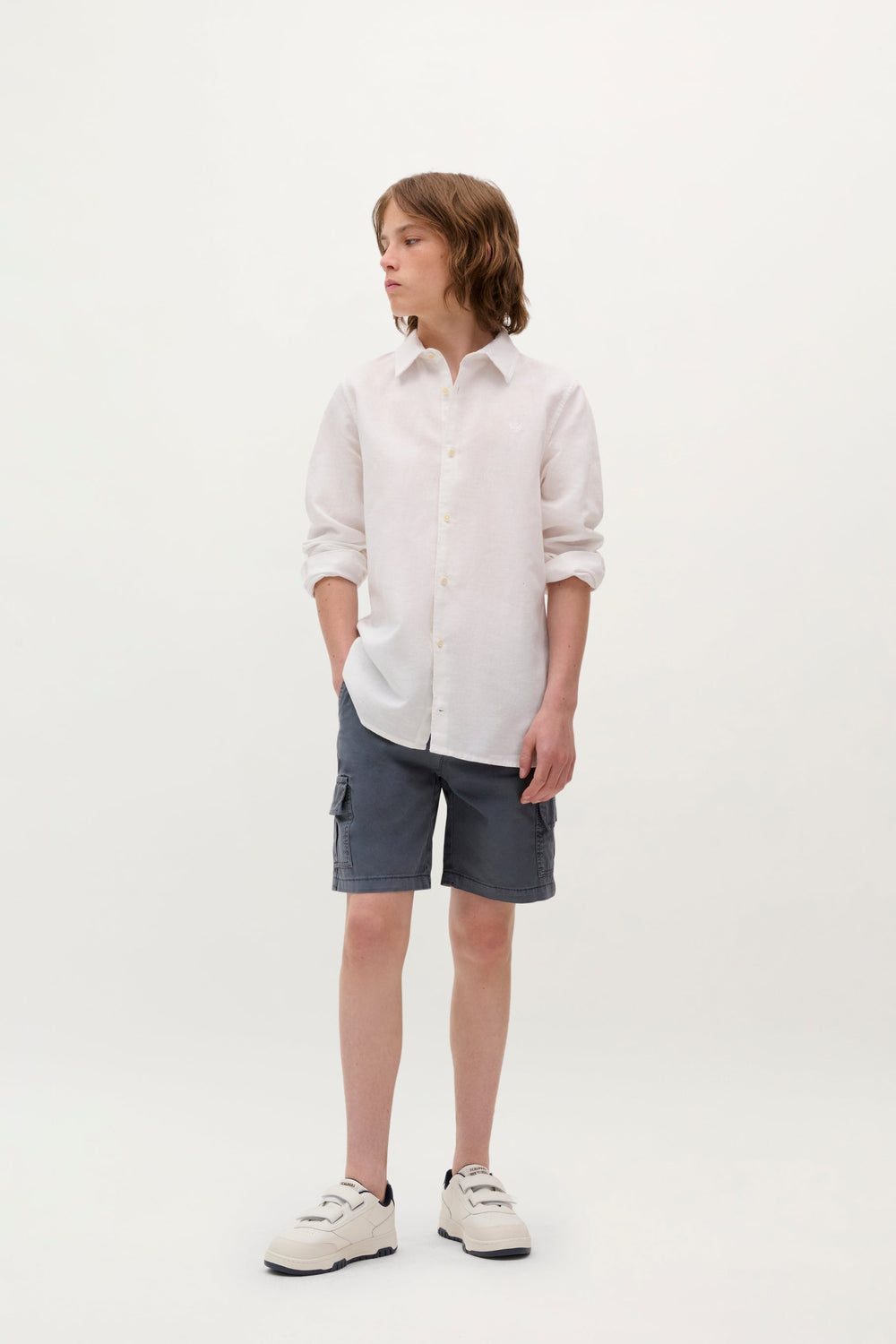 Shirt with matching embroidered skull detail on the chest. Made of a linen and cotton blend. Regular fit. Classic collar. Button fastening. Rear panel. Long sleeves with buttoned cuffs.