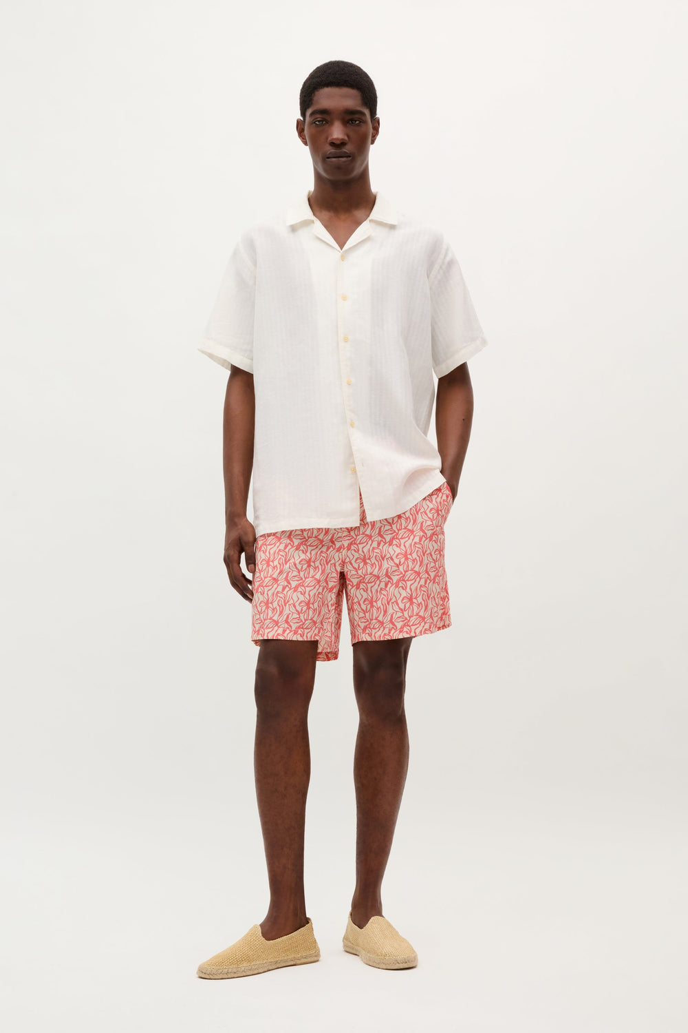 Swimming trunks made of technical fabric. Elasticated adjustable drawstring waistband. Side pockets and back patch pocket detail. Lined.