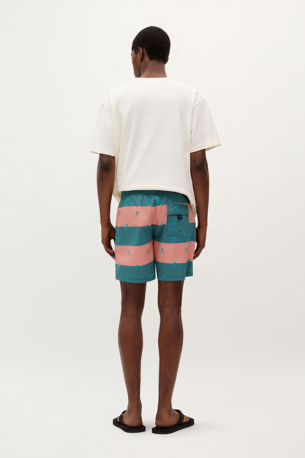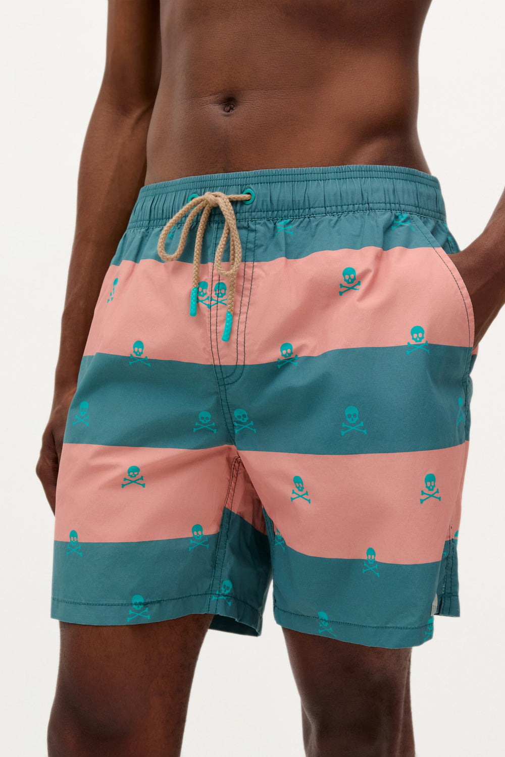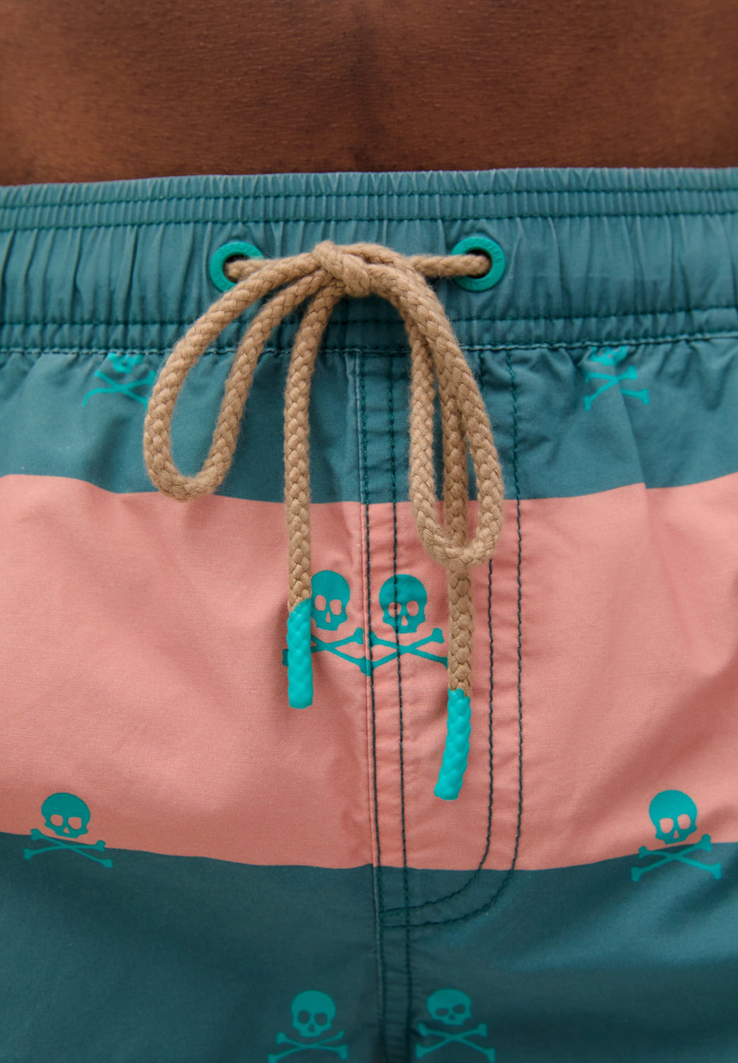 SWIMMING TRUNKS WITH STRIPES AND SKULL