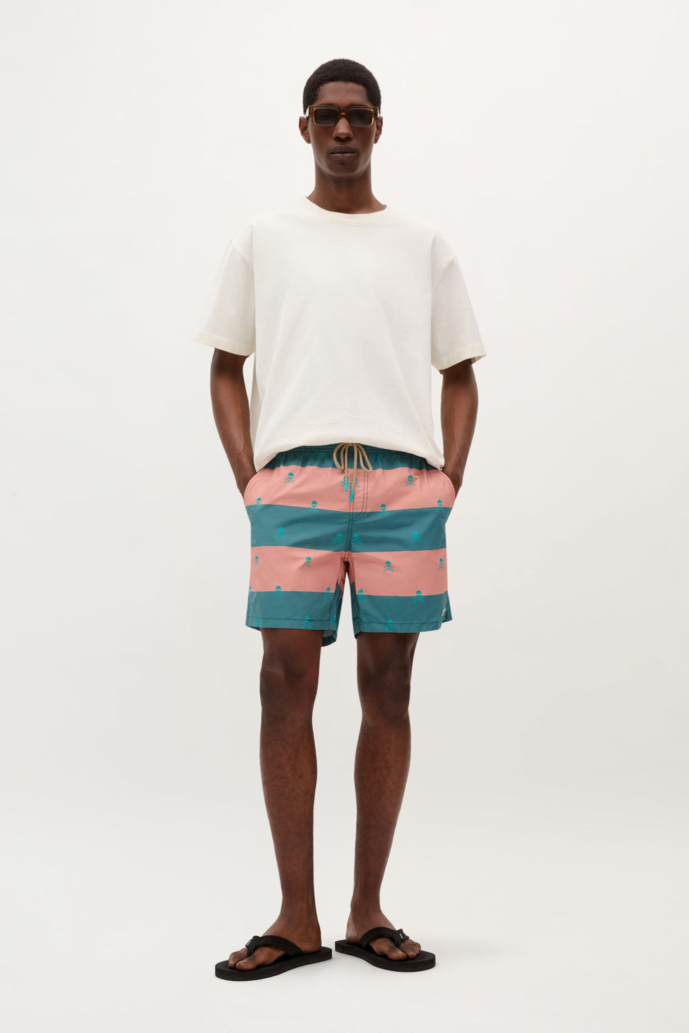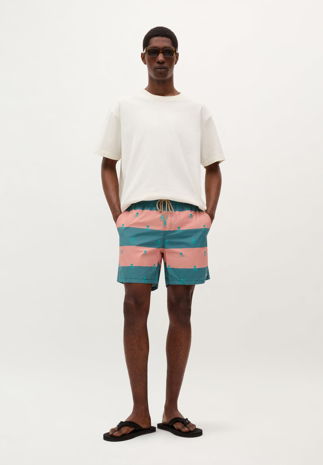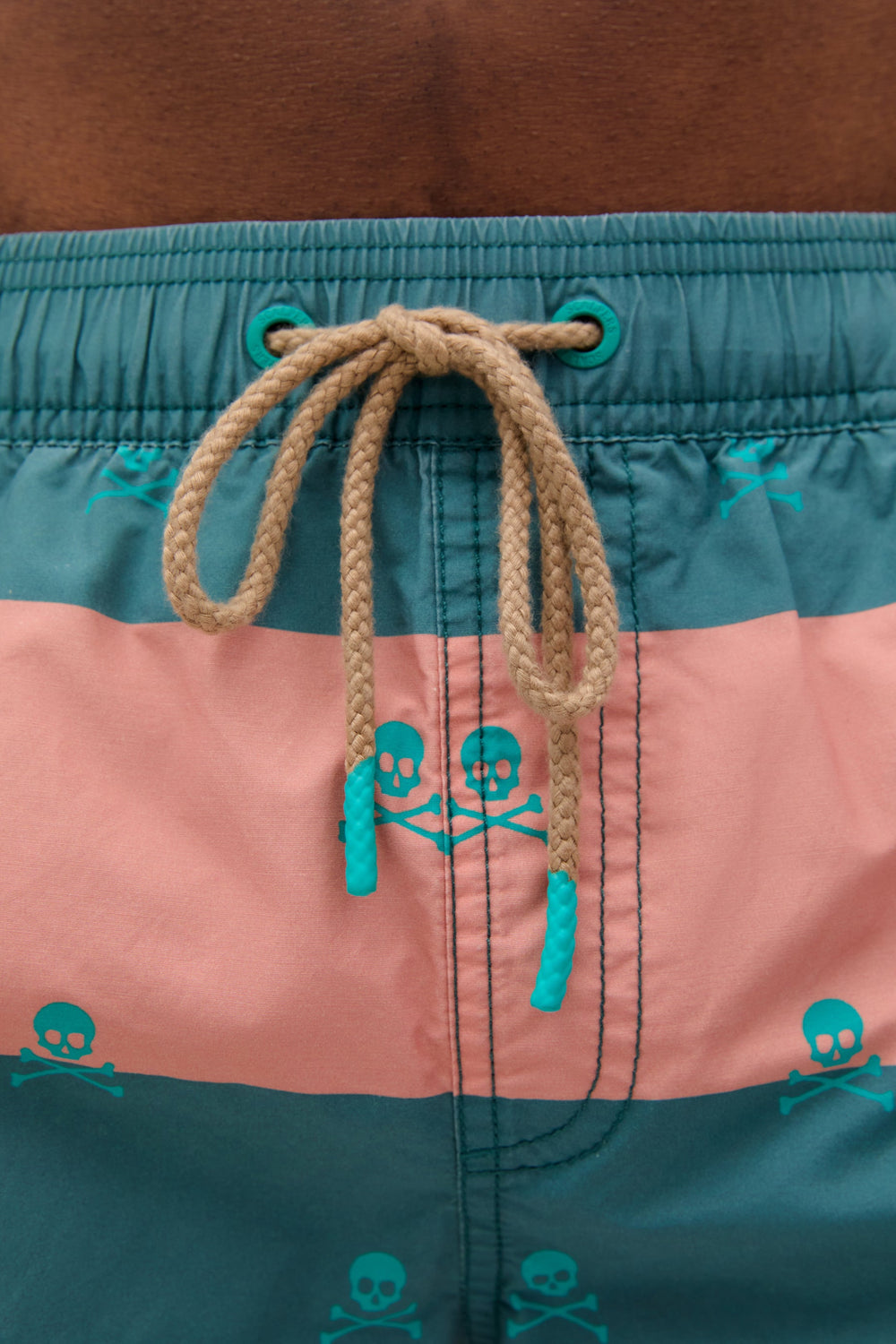 SWIMMING TRUNKS WITH STRIPES AND SKULL