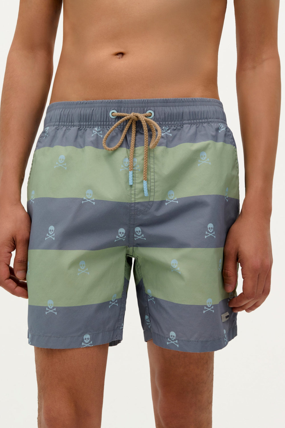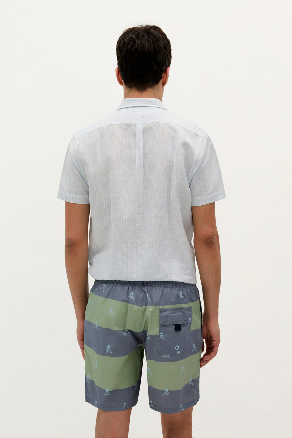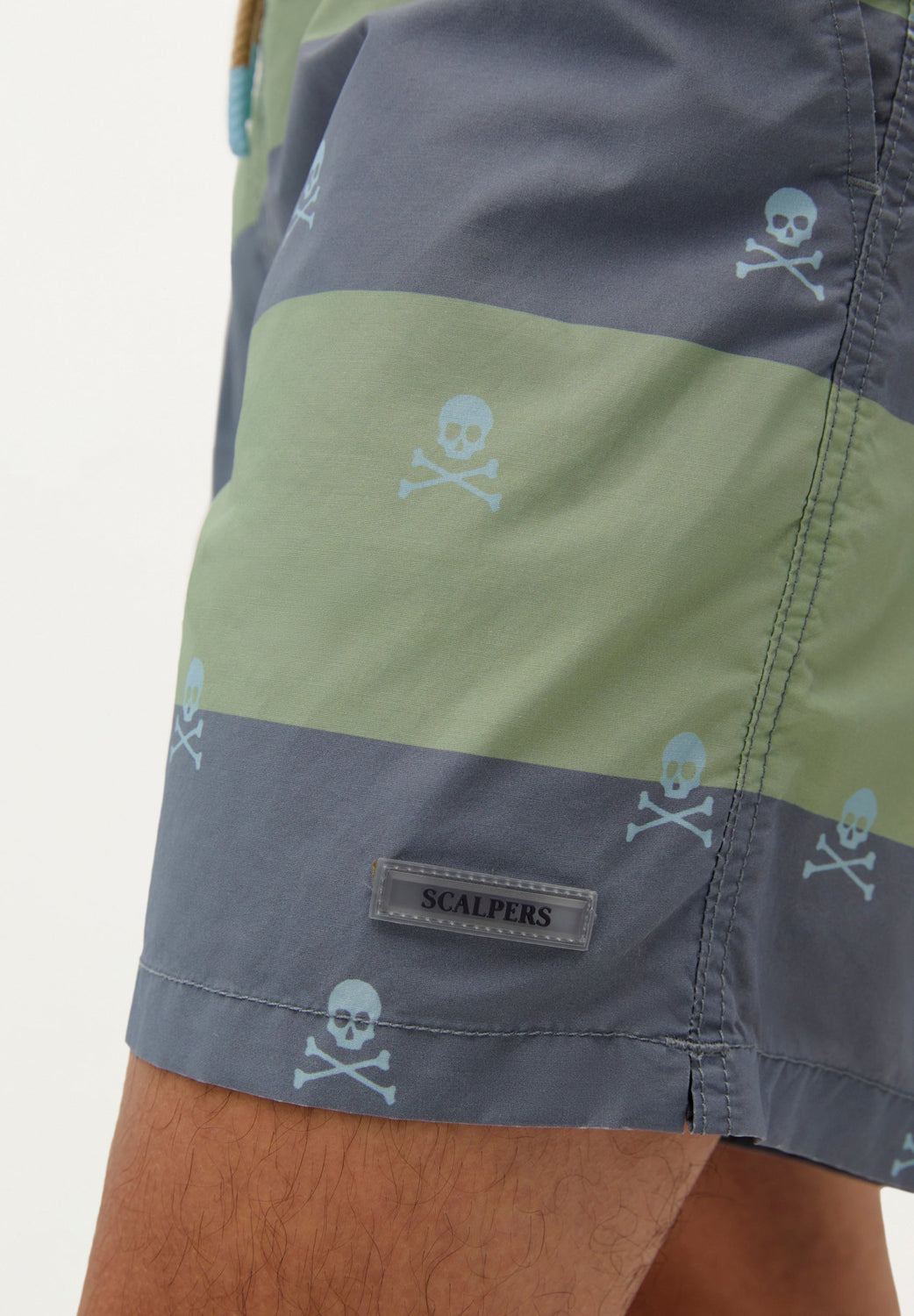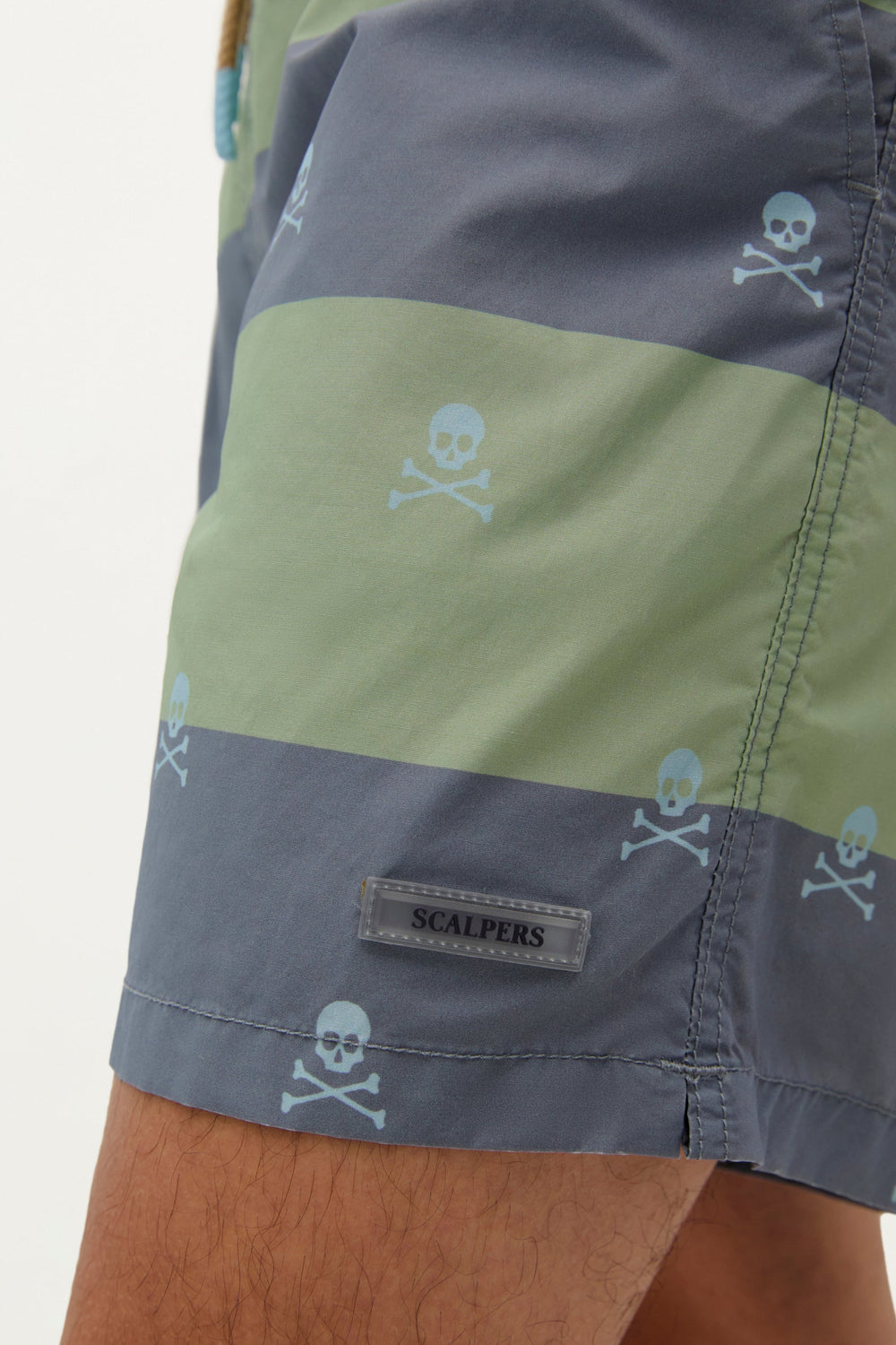 SWIMMING TRUNKS WITH STRIPES AND SKULL