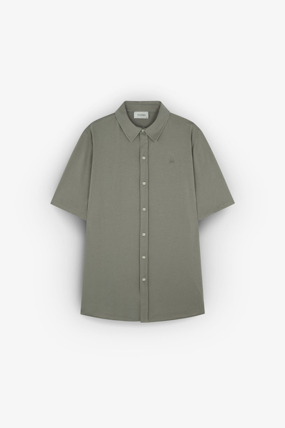 Premium shirt made of cotton and linen. Regular fit, classic collar and button fastening. Short sleeves and matching embroidered skull.