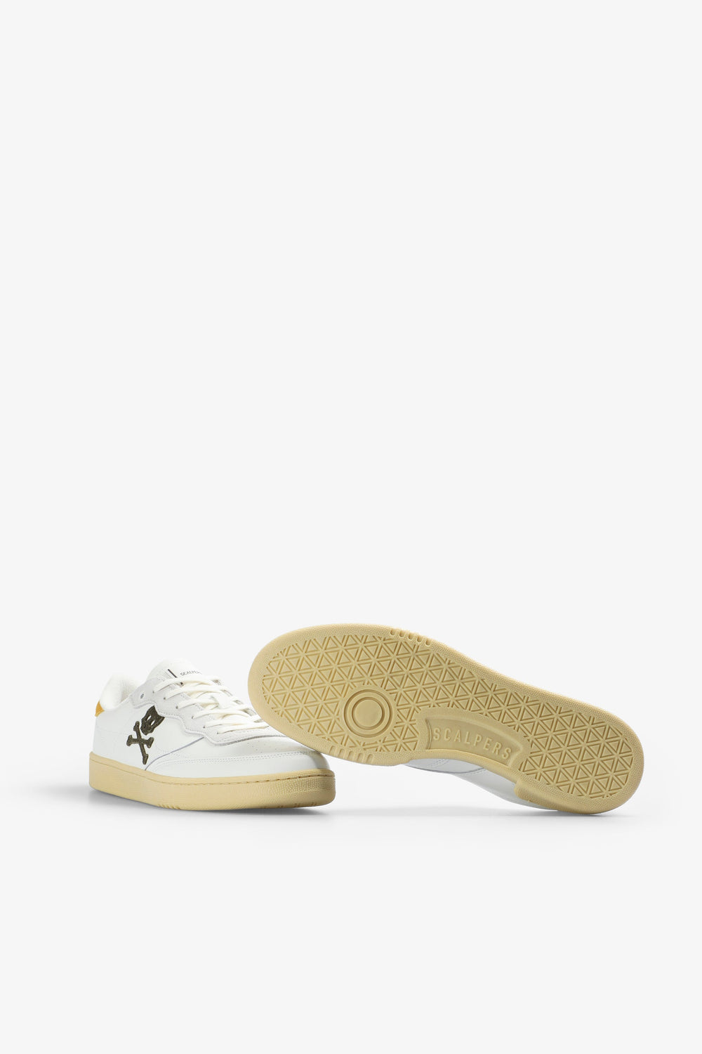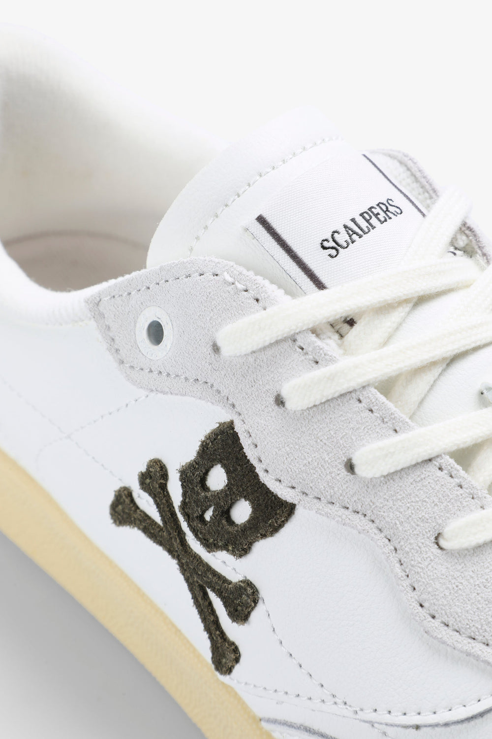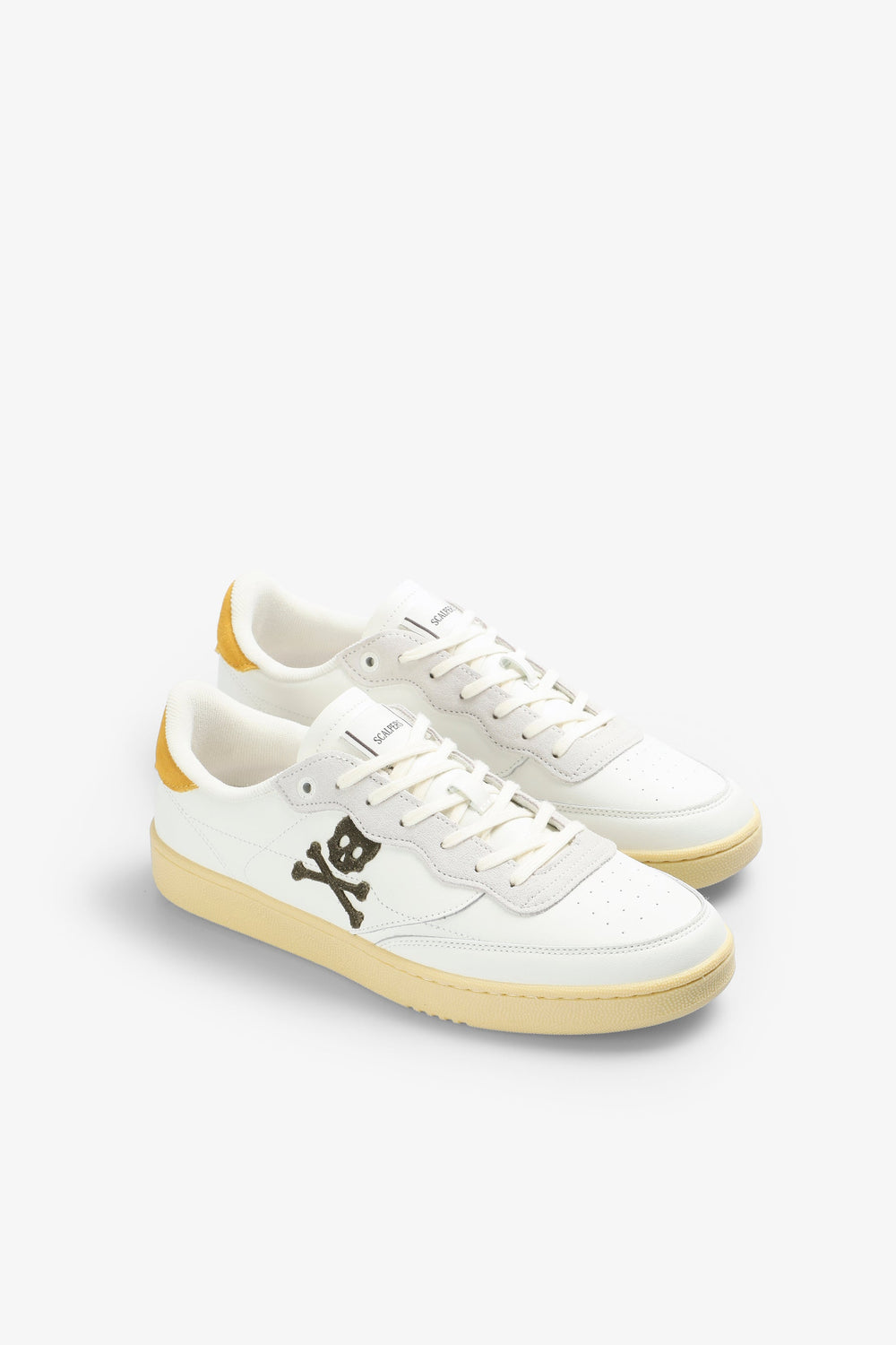 Sneakers con calavera lateral a contraste confeccionada en piel. Cierre con cordones, suela de TPR, detalle a contraste en talón y detalle de etiqueta en lengüeta personalizada.
