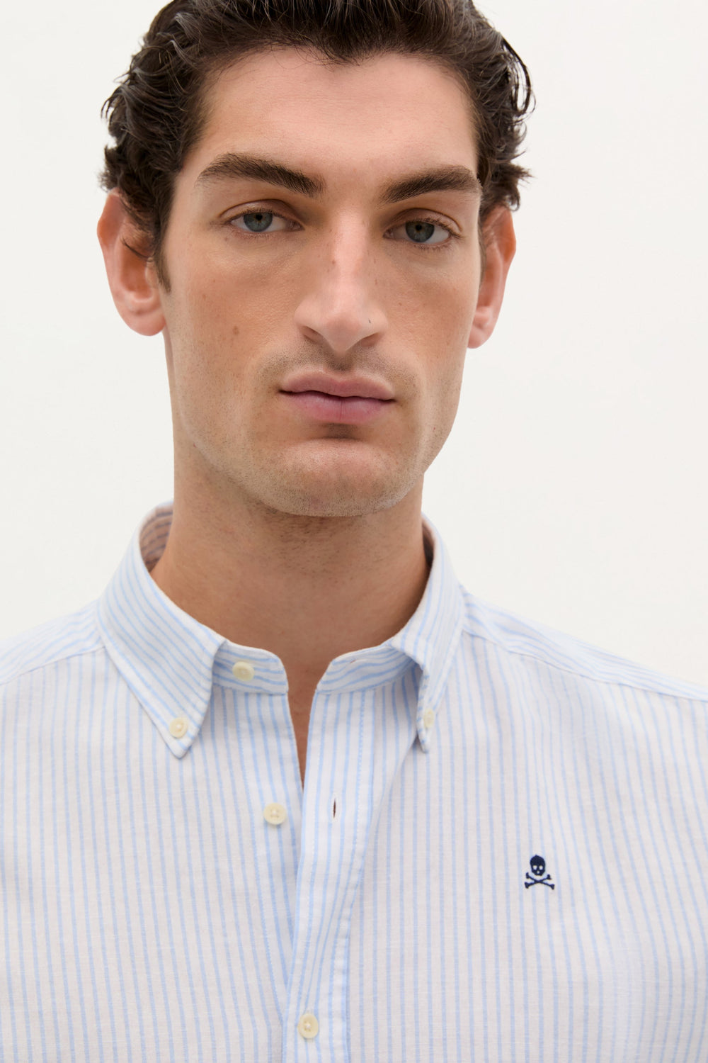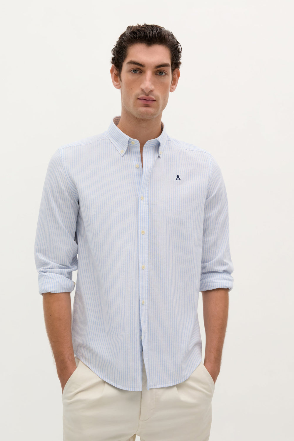 Striped shirt in a cotton blend. Classic collar, button fastening, regular fit, contrast skull on chest. Buttoned cuffs.