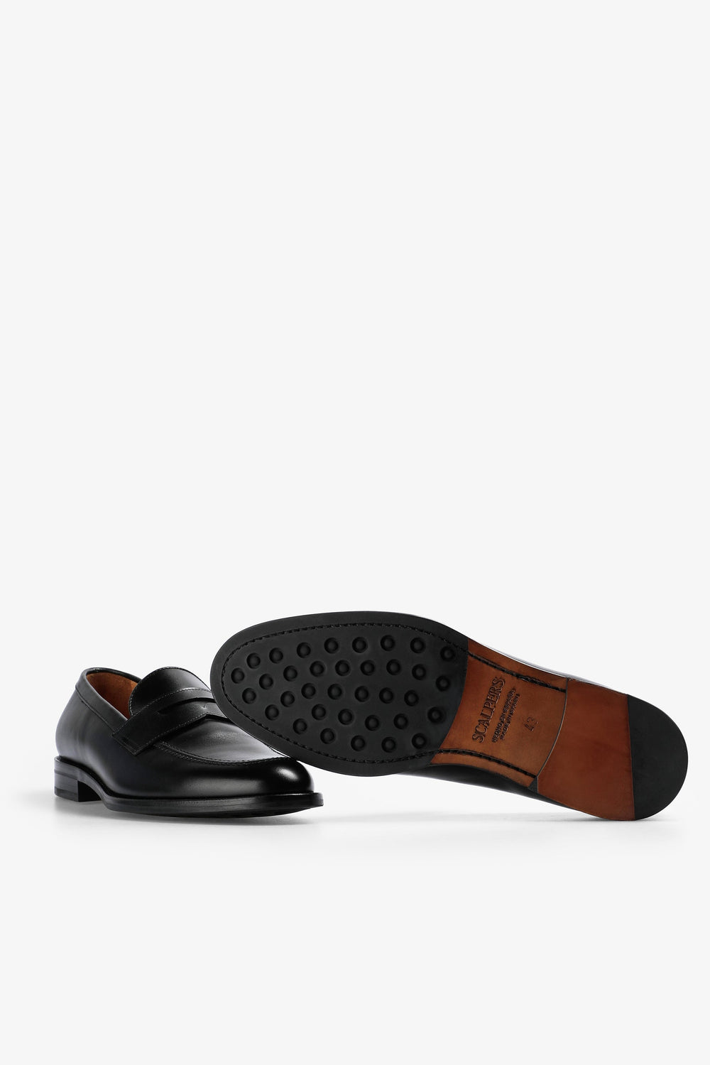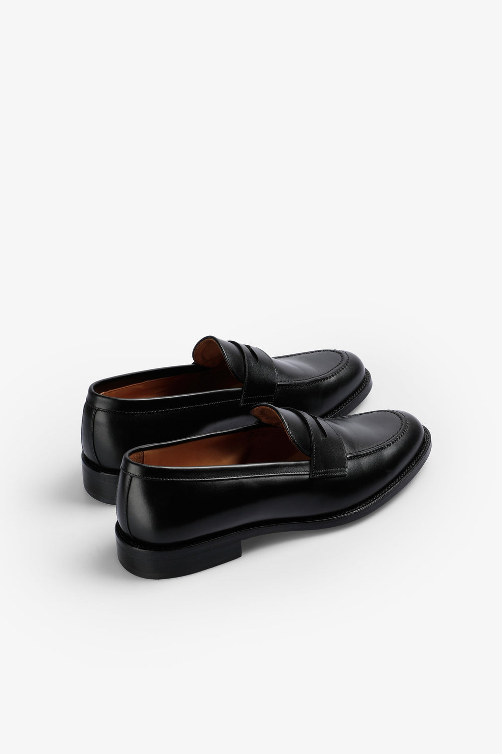 Formal loafers in black leather.Upper crafted from 100% high-quality leather with a polished finish. Leather insole. Rounded almond toe. Leather sole stitched to the upper.