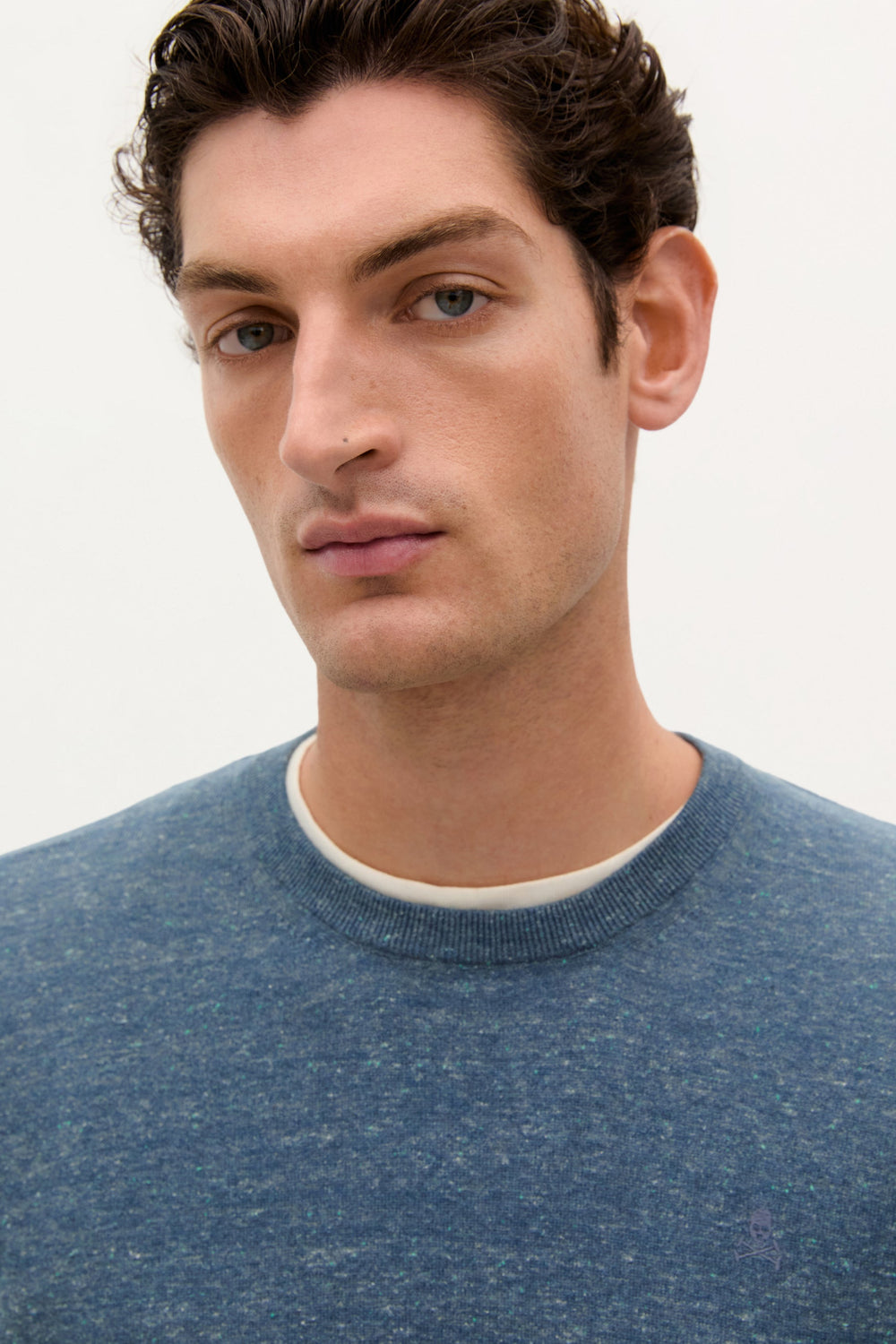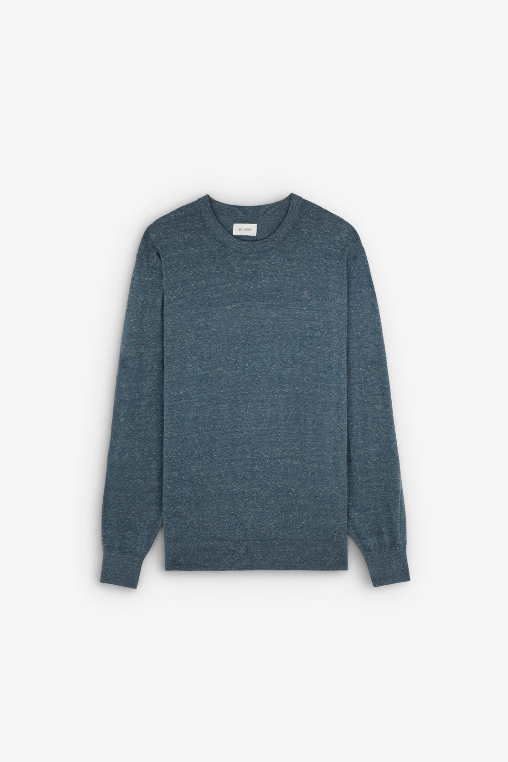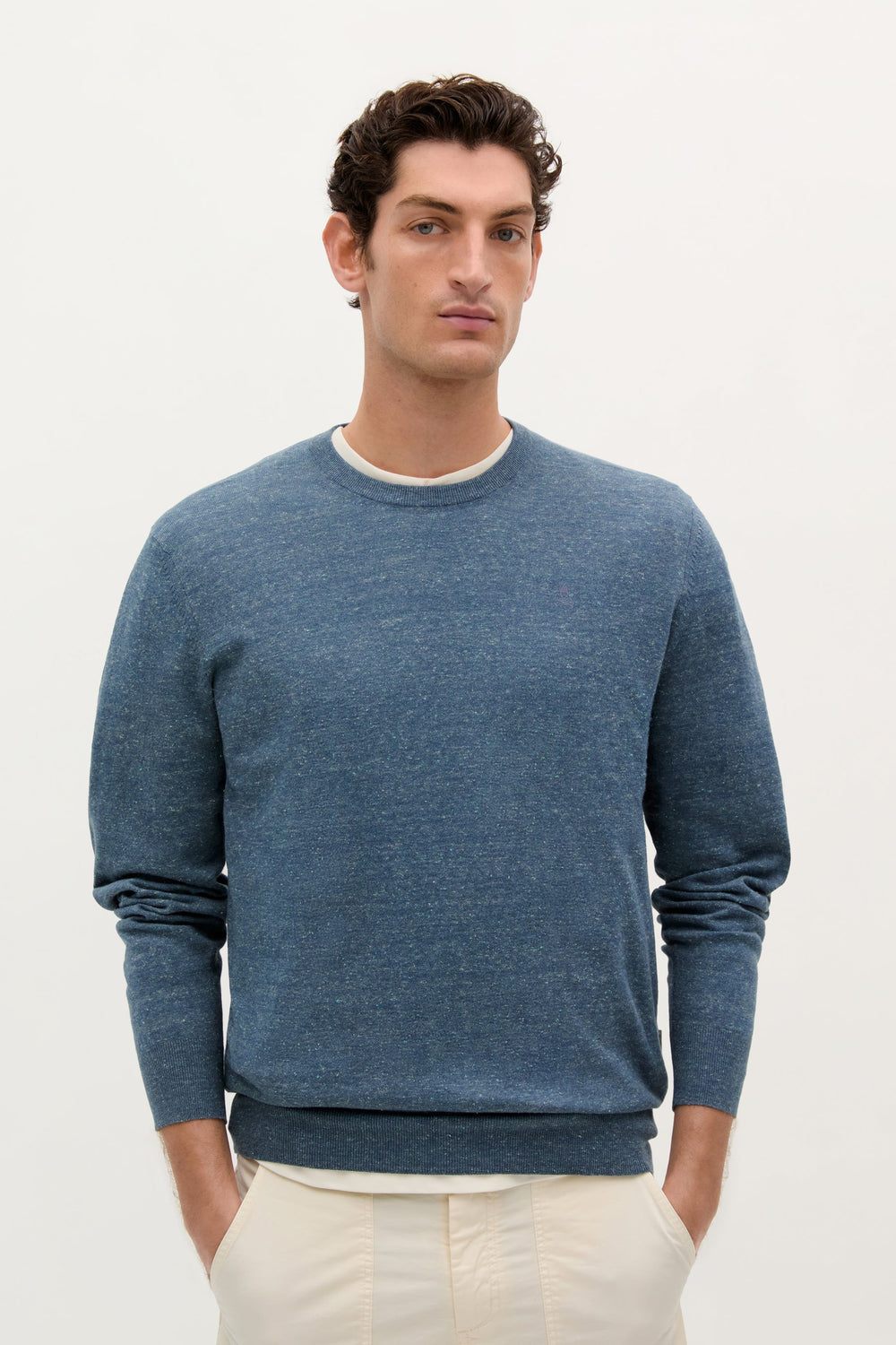 Knit sweater made of a cotton blend fabric. Round neck. Long sleeves. Ribbed trim.