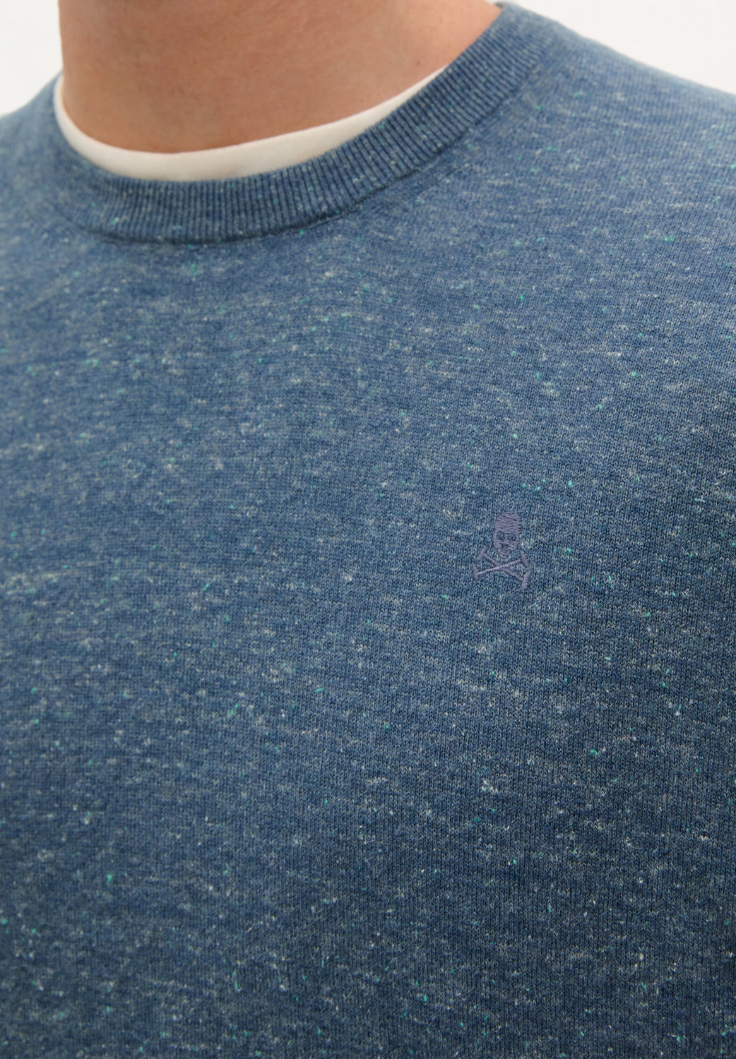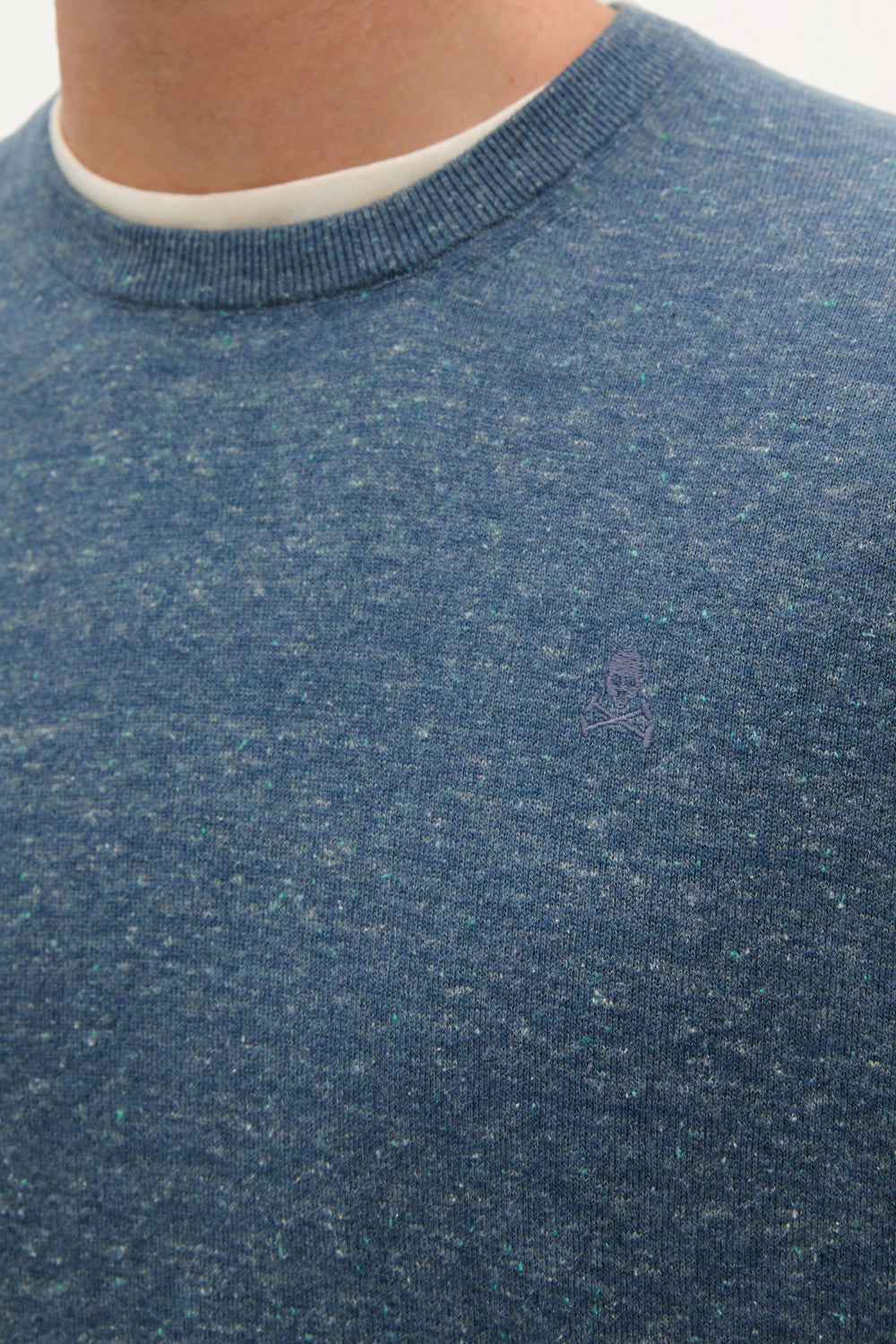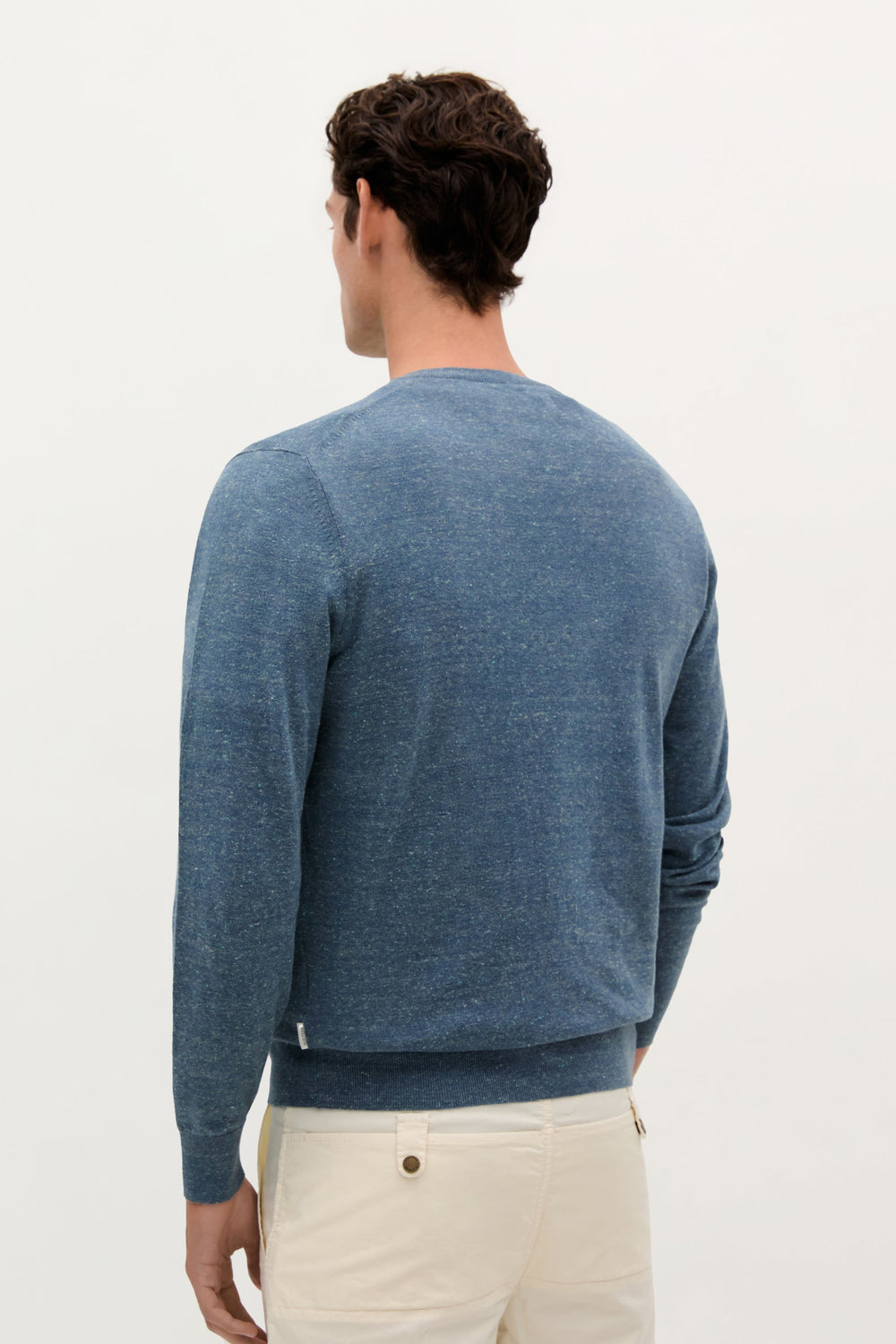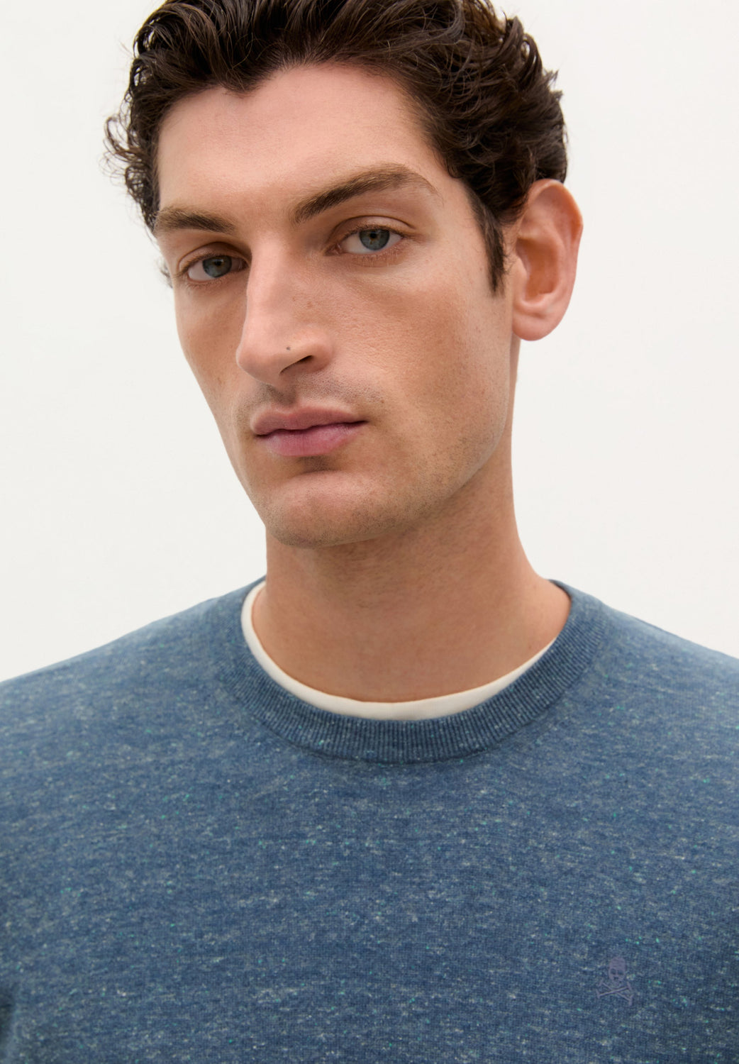 Knit sweater made of a cotton blend fabric. Round neck. Long sleeves. Ribbed trim.