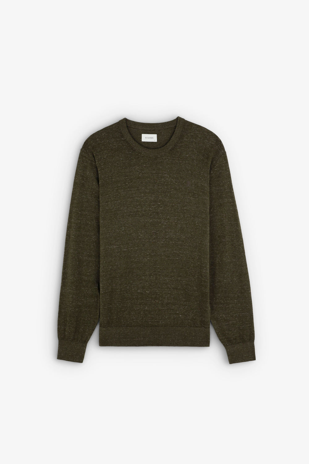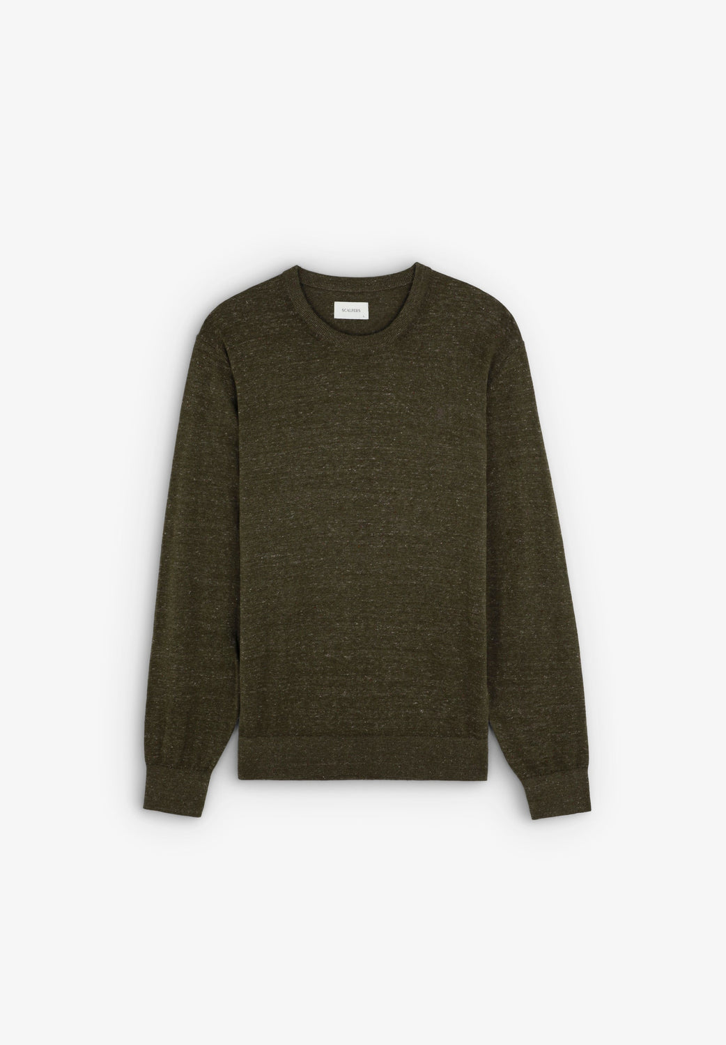 Knit sweater made of a cotton blend fabric. Round neck. Long sleeves. Ribbed trim.