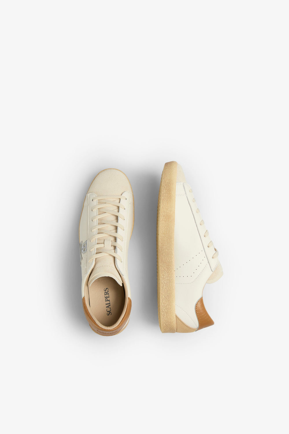 Low top sneakers with contrast metal skull on the side. Made with a blend of Action Leather and suede. Lace-up fastening. Recycled rubber sole with worn-out effect. Contrast heel detail.
