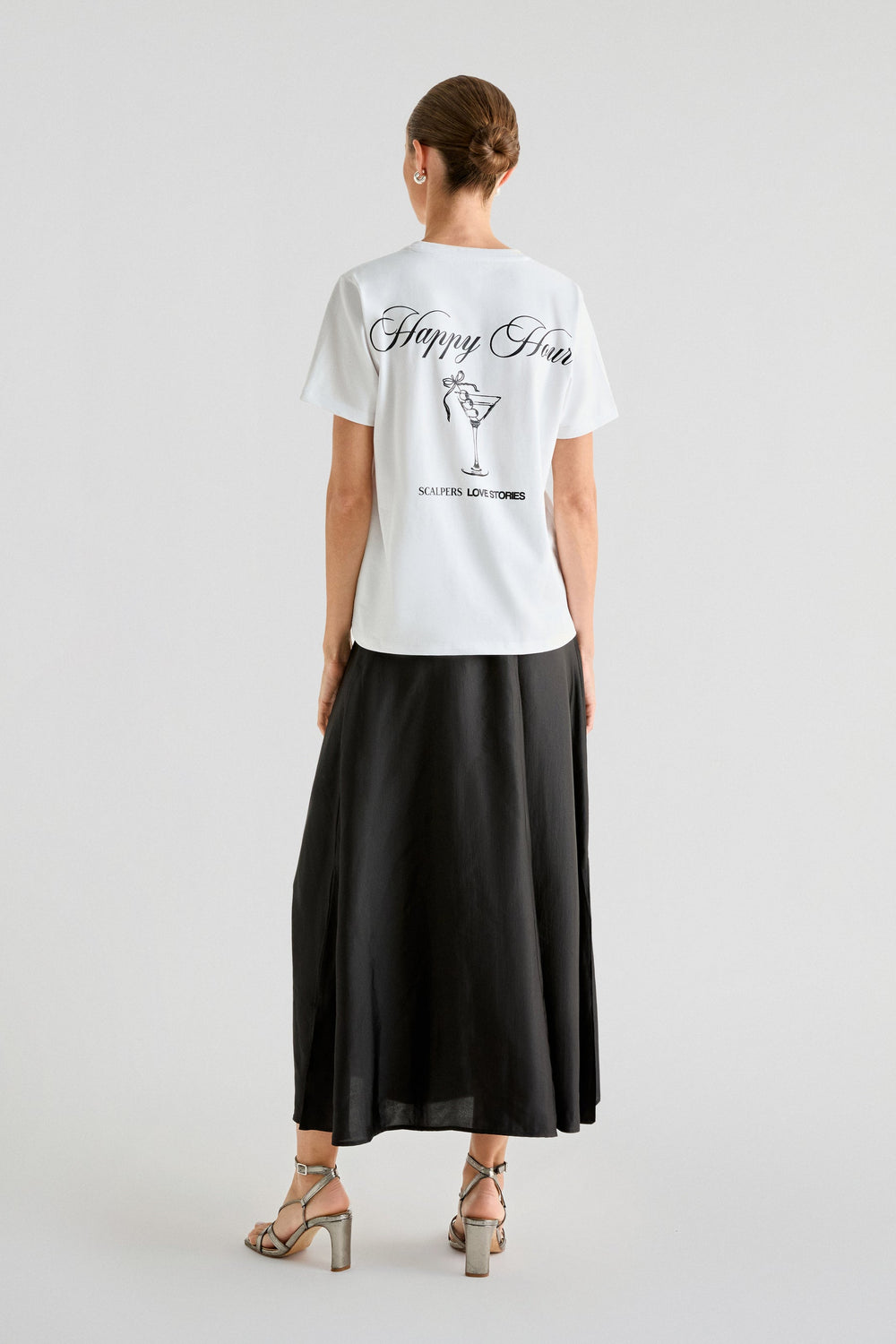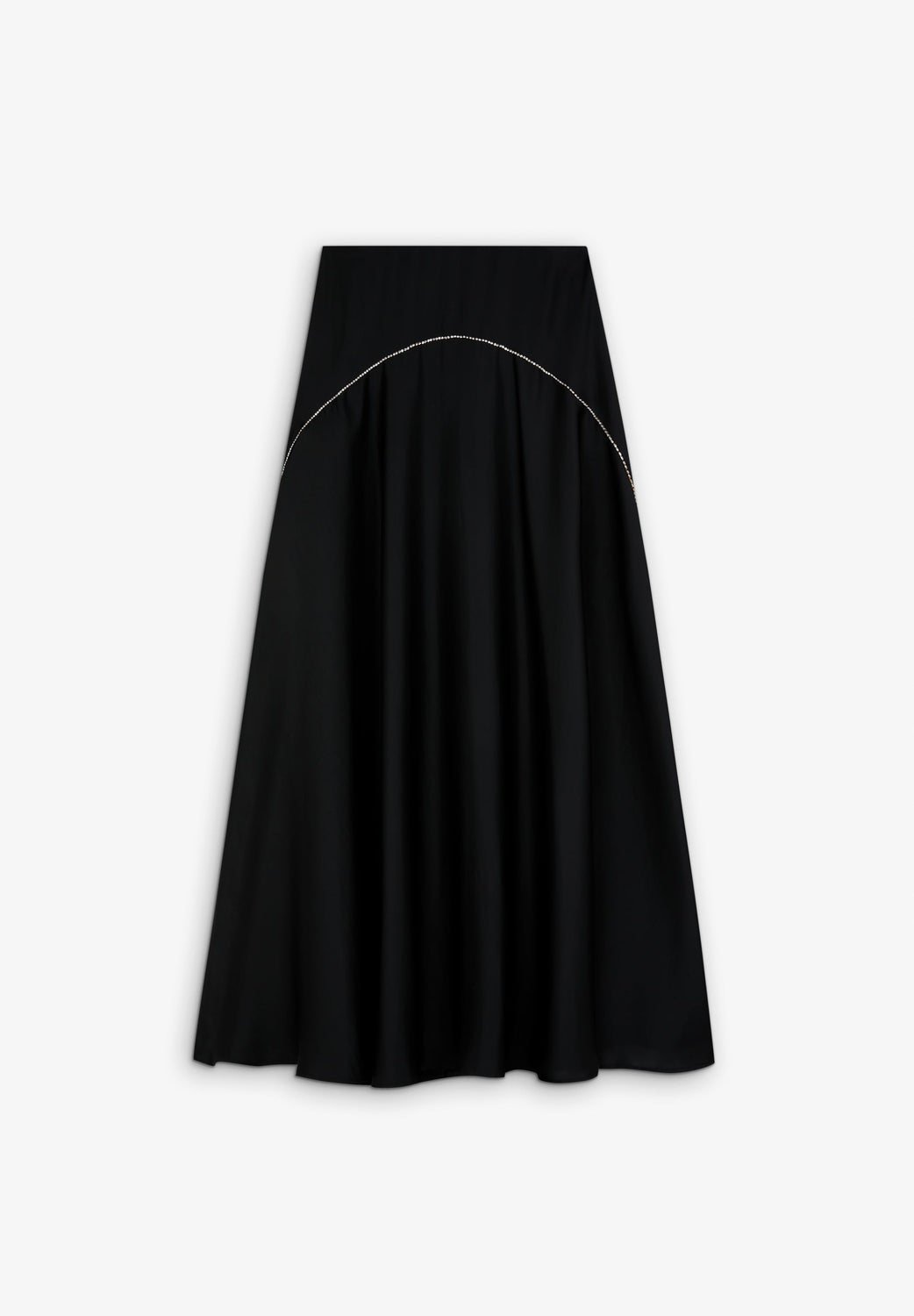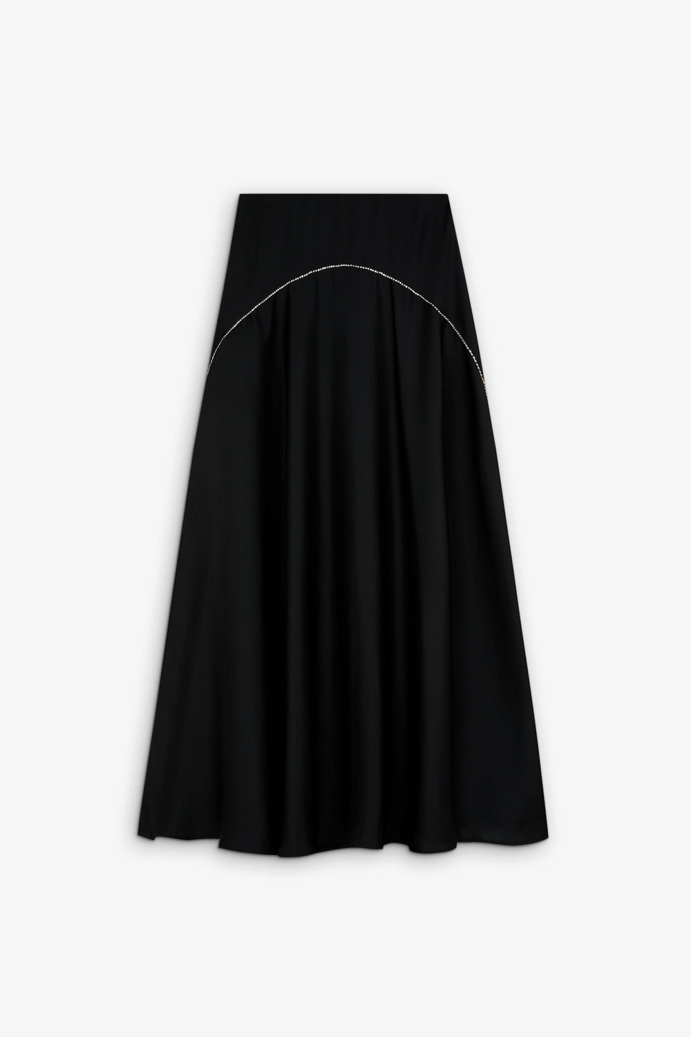 Midi skirt made of satin fabric. Regular fit, side zip fastening and crystal details.