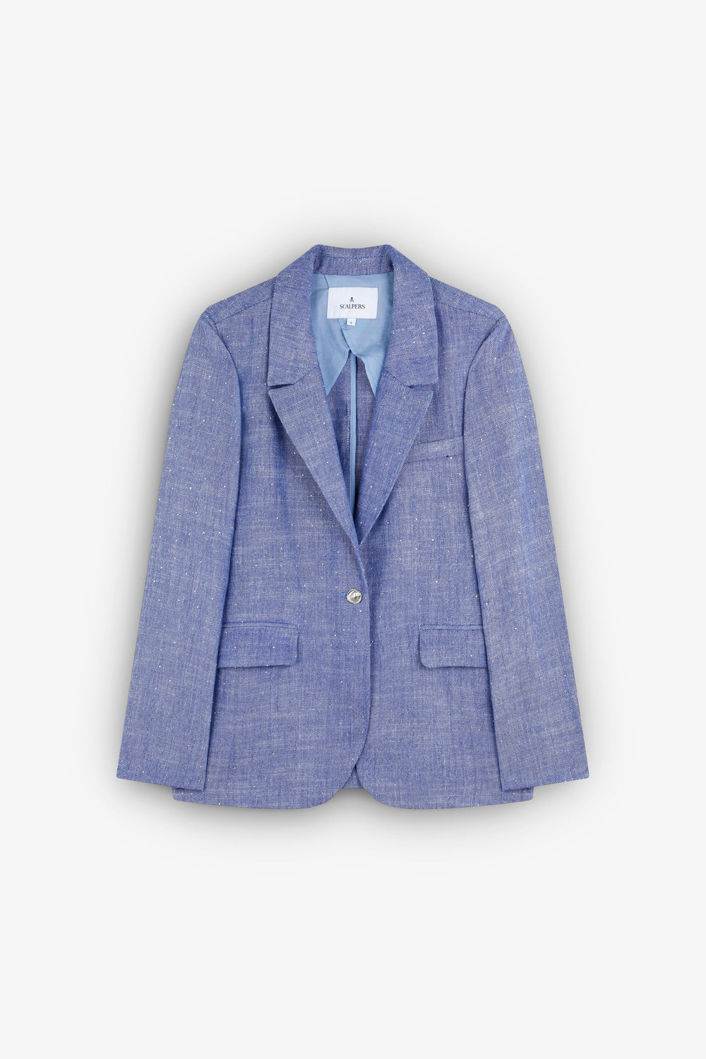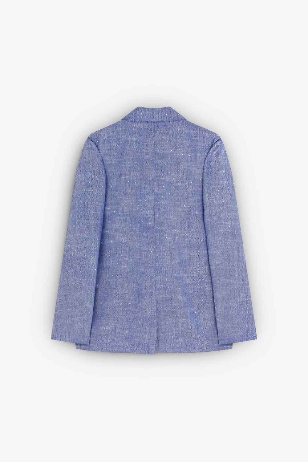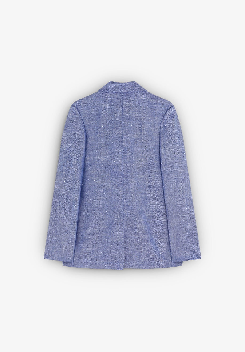 Linen-blend blazer with all-over rhinestone details. Regular fit, lapel collar with chest pocket with piping and front placket fastening.