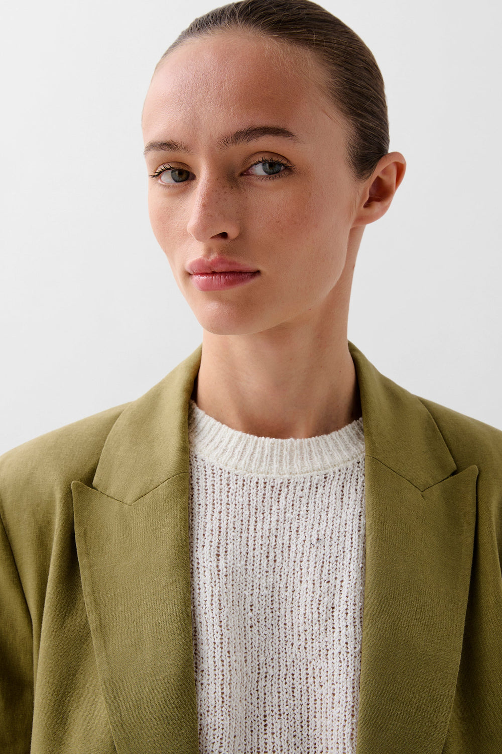 Blazer made of a cotton and linen blend. Regular fit, lapel collar with button fastening. Adjustable gathered detail at waist.