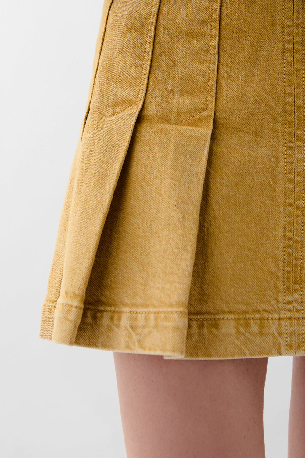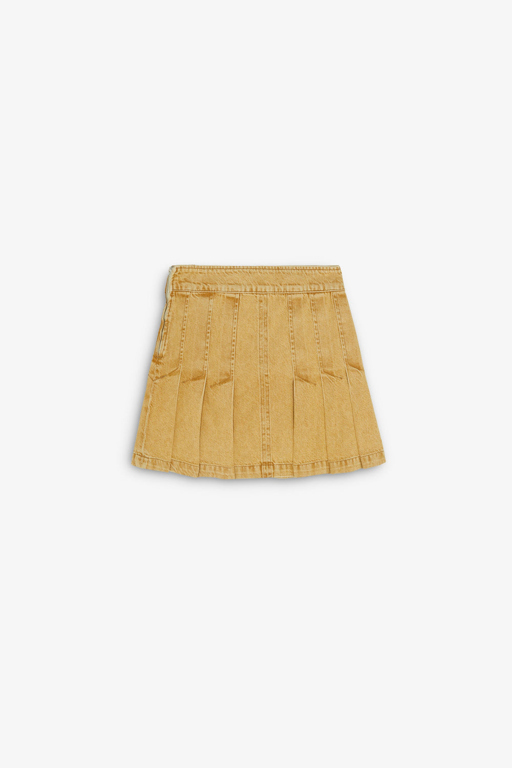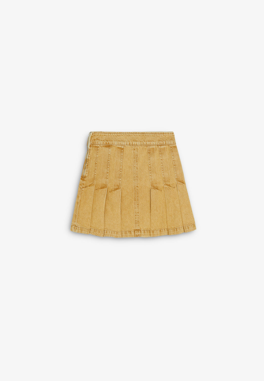 Pleated mini skirt made of 100% organic BCI cotton. Matching side zip fastening. Faded effect.