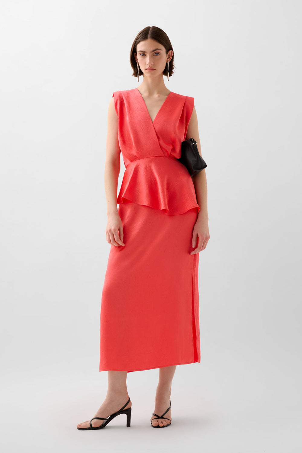 Midi skirt made of flowing fabric with texture. Concealed side zip fastening and split leg.