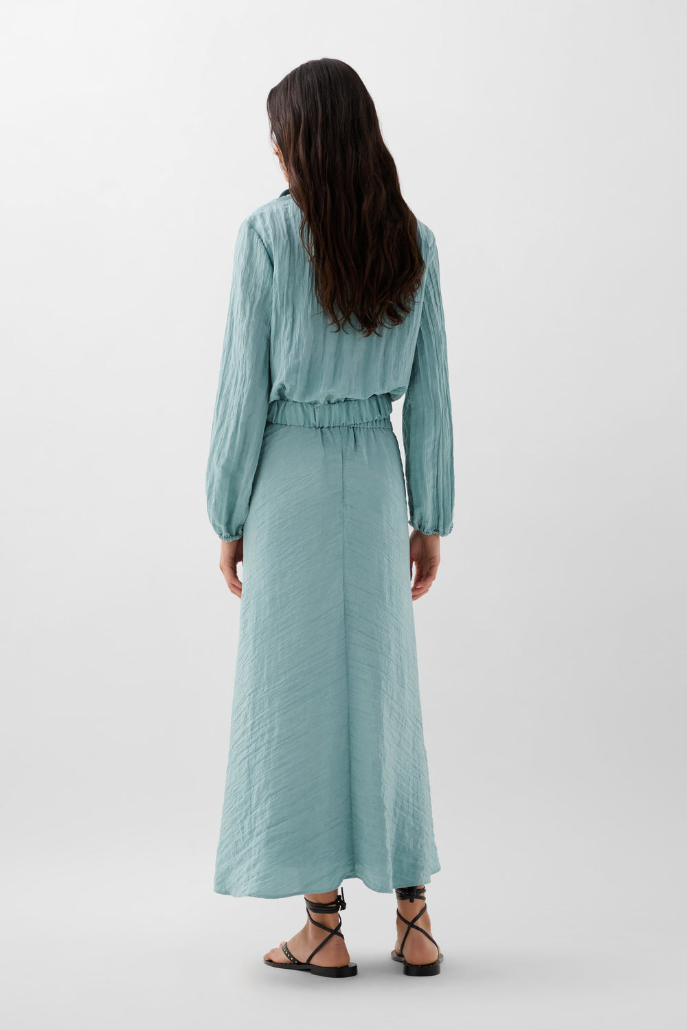Textured midi skirt with elasticated waist and concealed zip fastening at the back.
