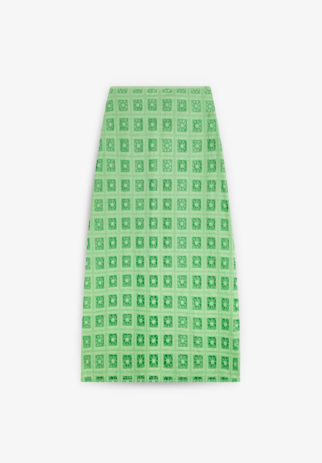 Skirt made of 100% cotton with embroidery. Midi fit with concealed zip fastening.