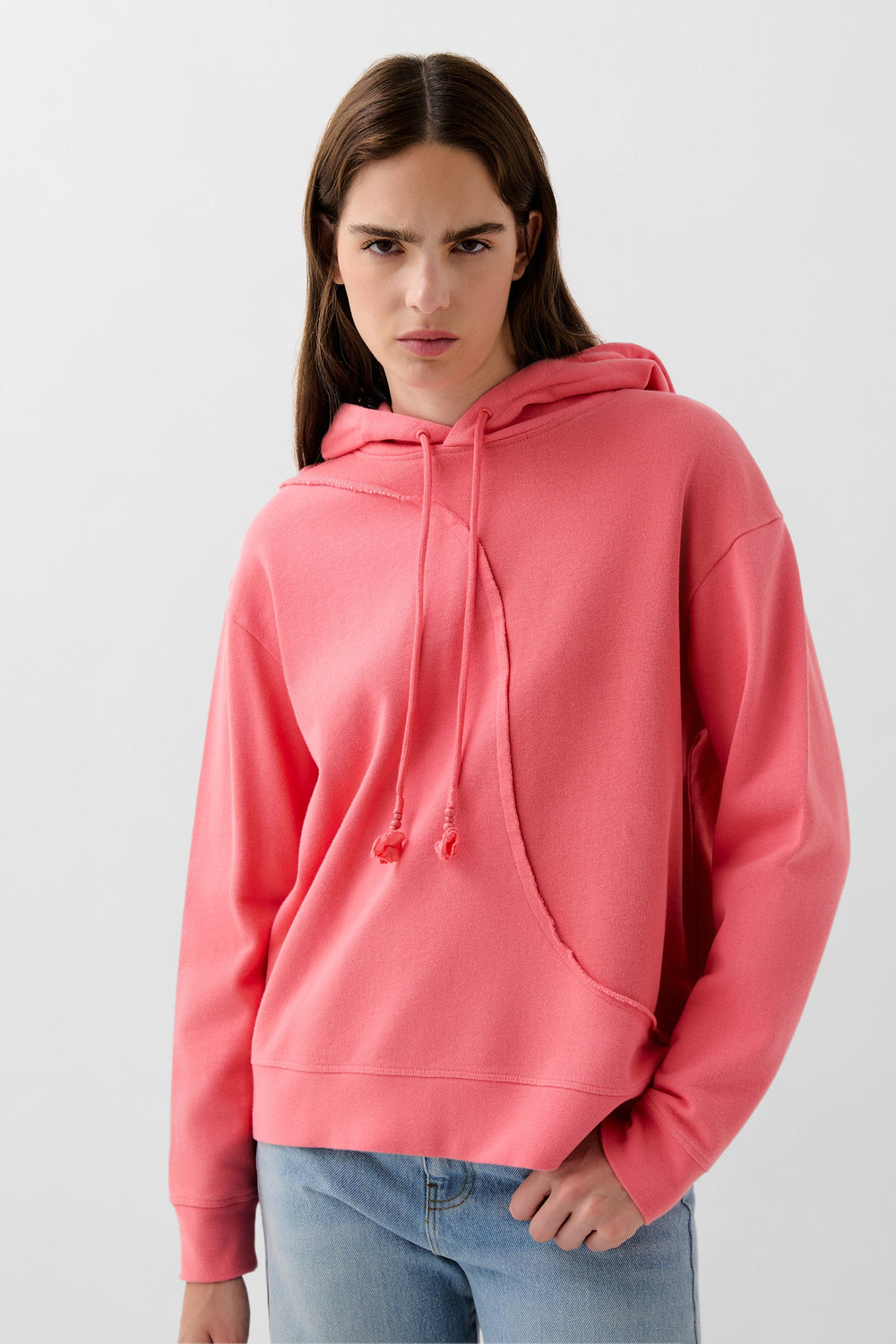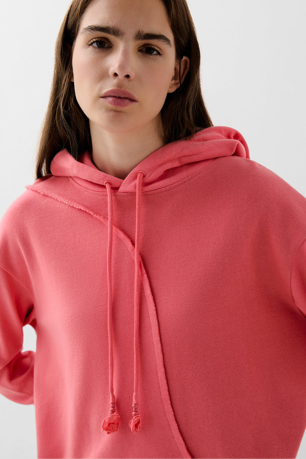 Two-tone hoodie with waved design. Made of slightly stretchy cotton fabric. Regular Fit. Hood with adjustable drawstrings finished with detail. Long sleeves with ribbed cuffs.