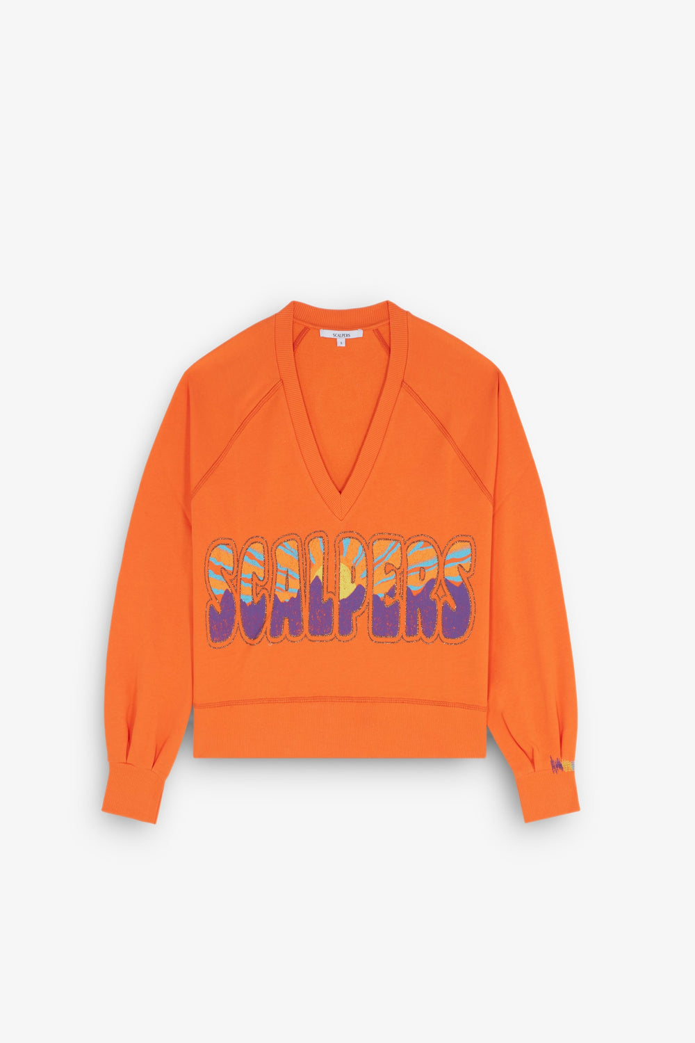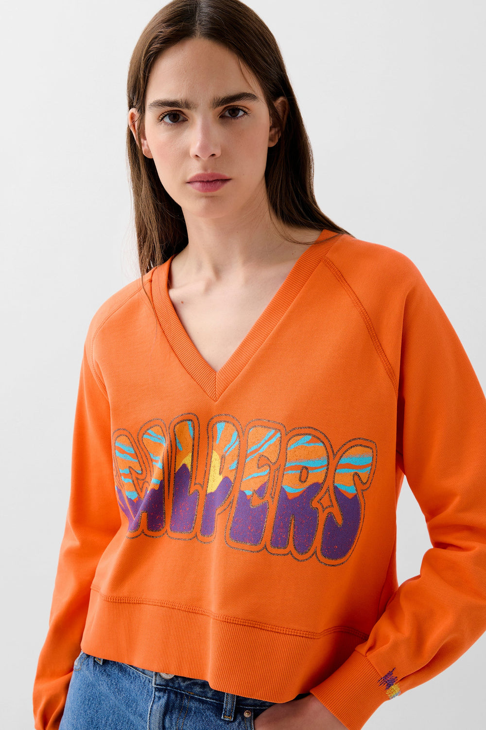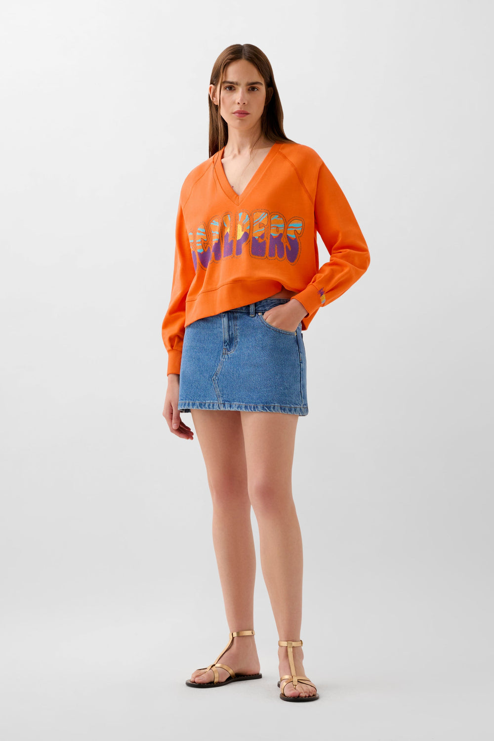 Sweatshirt made of 100% organic BCI cotton. Raglan sleeve. V-neck. Ribbed detail on the cuffs and neckline. Contrast embroidery on the front. Pleated cuff detail. Made in Portugal.