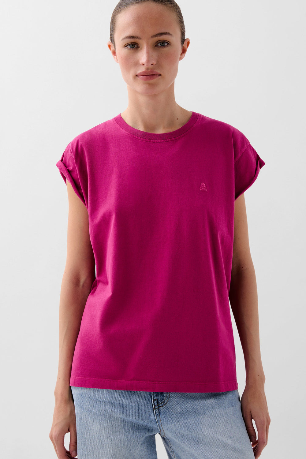T-shirt made of 100% BCI cotton. Regular fit, round neck and short sleeves. Matching embroidered skull detail.