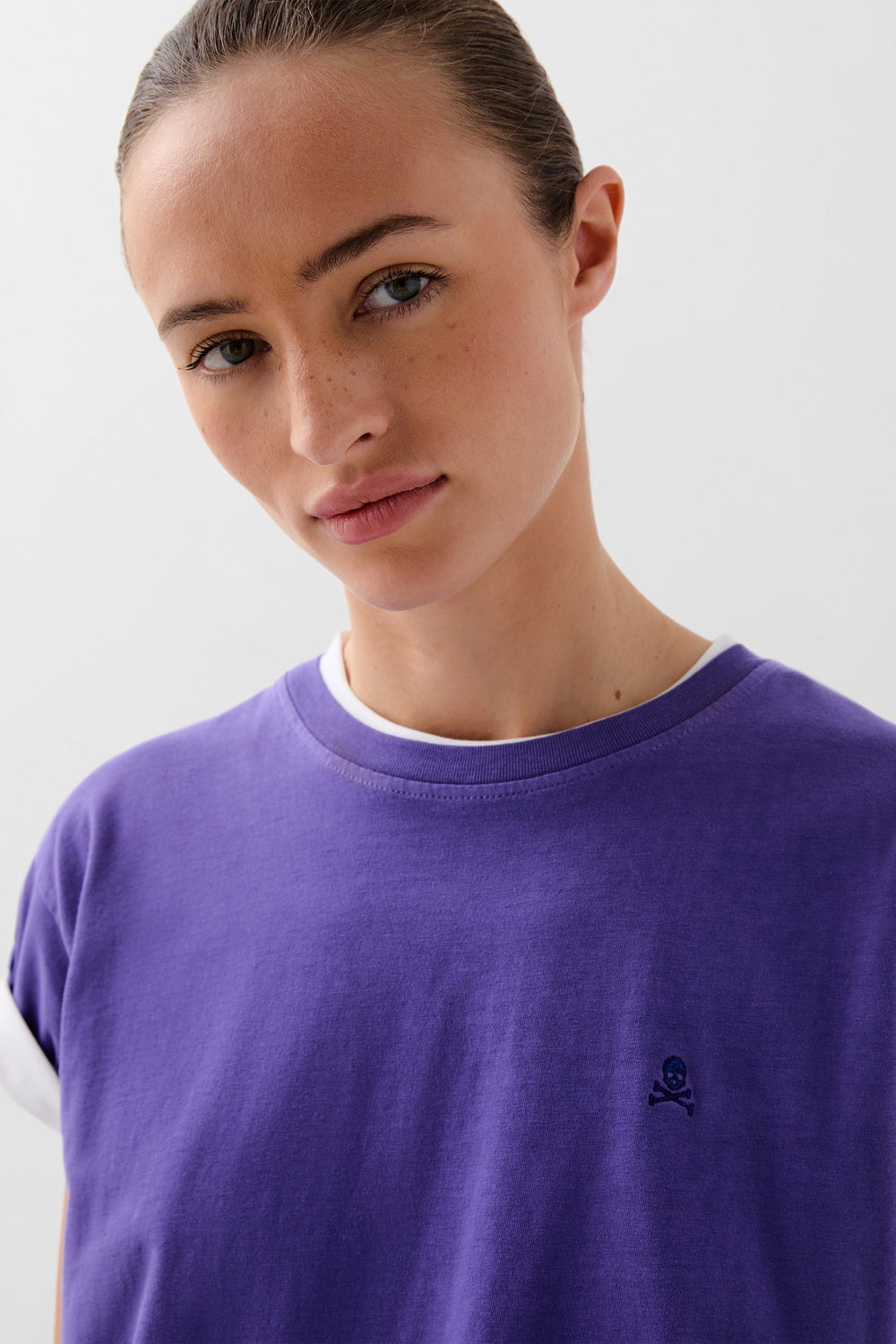 T-shirt made of 100% BCI cotton. Regular fit, round neck and short sleeves. Matching embroidered skull detail.