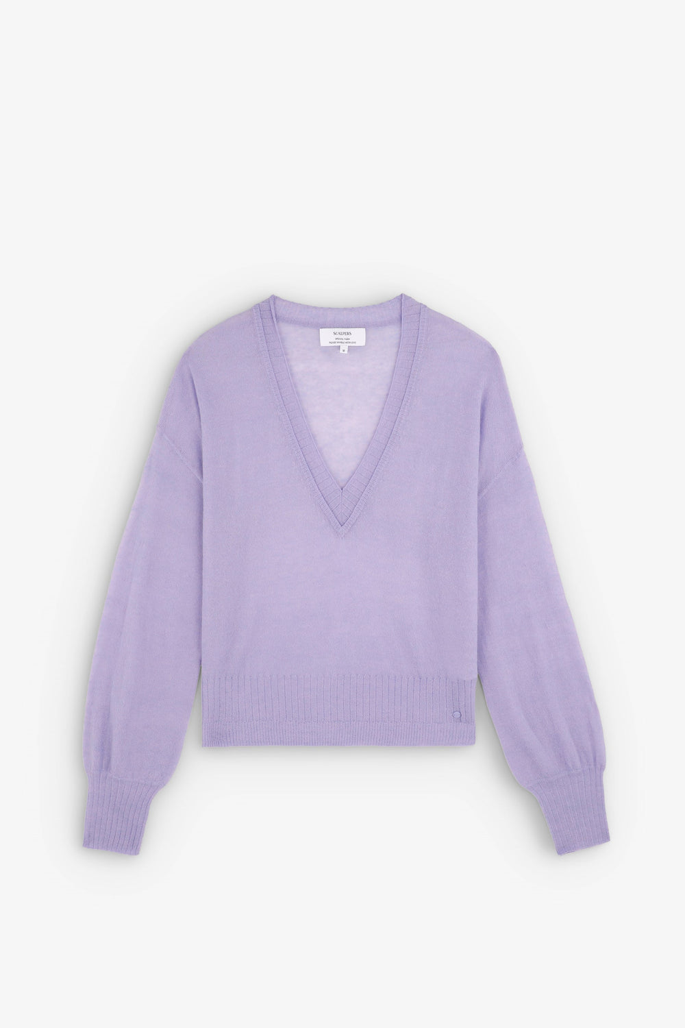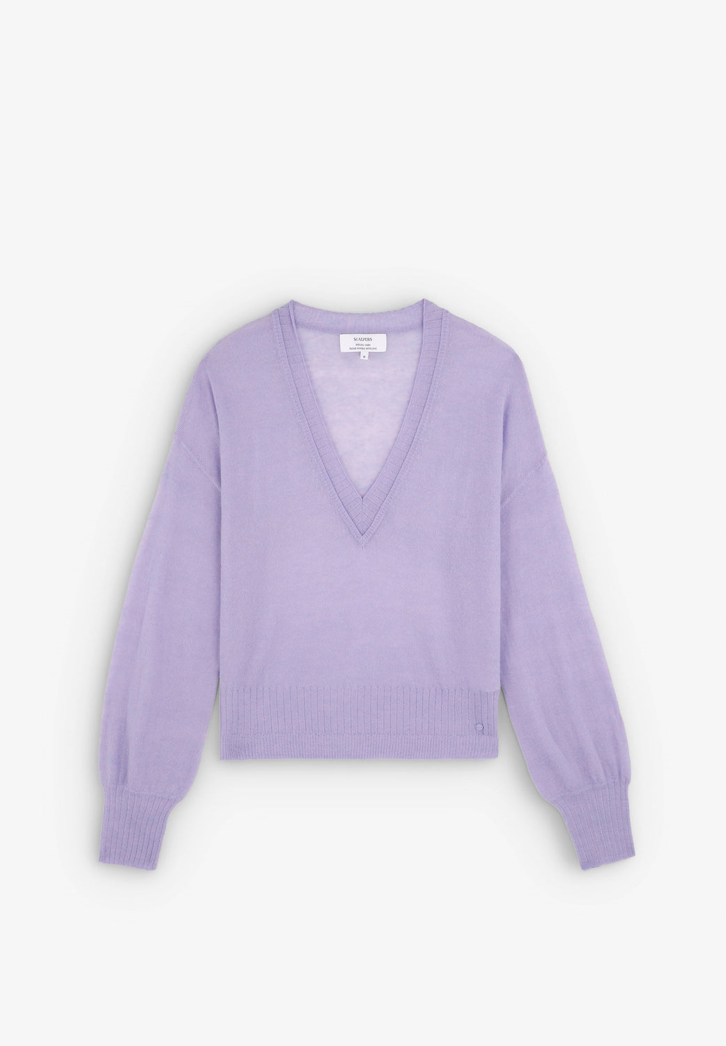 Sweater with detailing on the neckline. Made of a wool blend. Regular fit. V-neck. Long sleeves with ribbed trim.