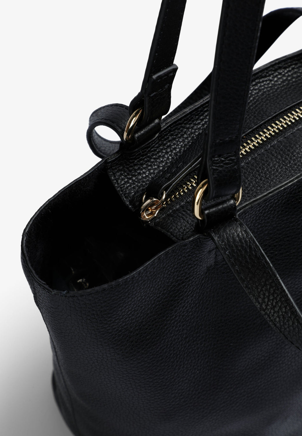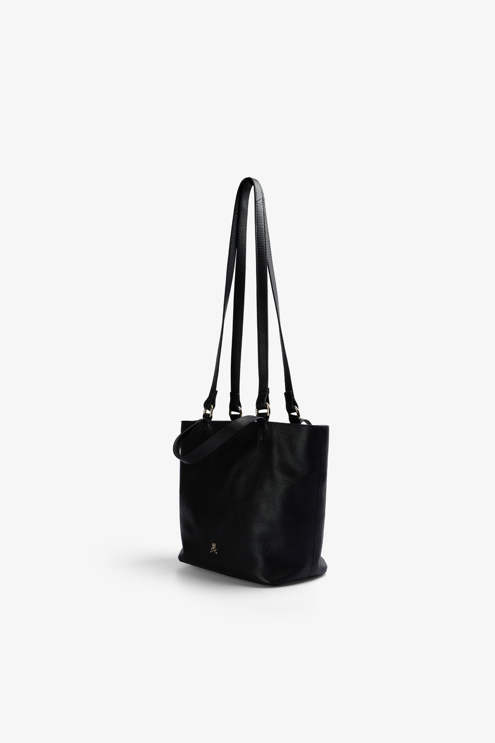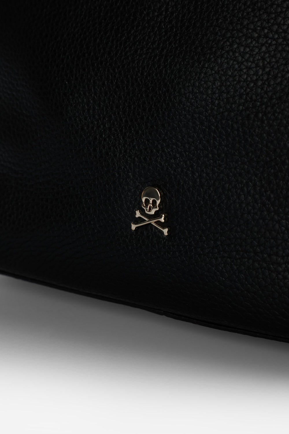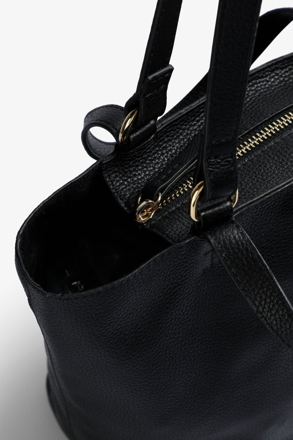 Bag made of 100% leather. Zip closure and double strap option. Front metallic logo patch.