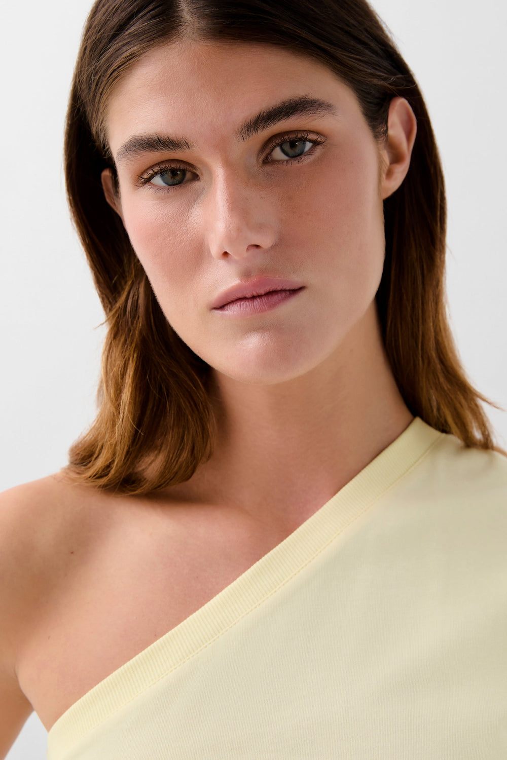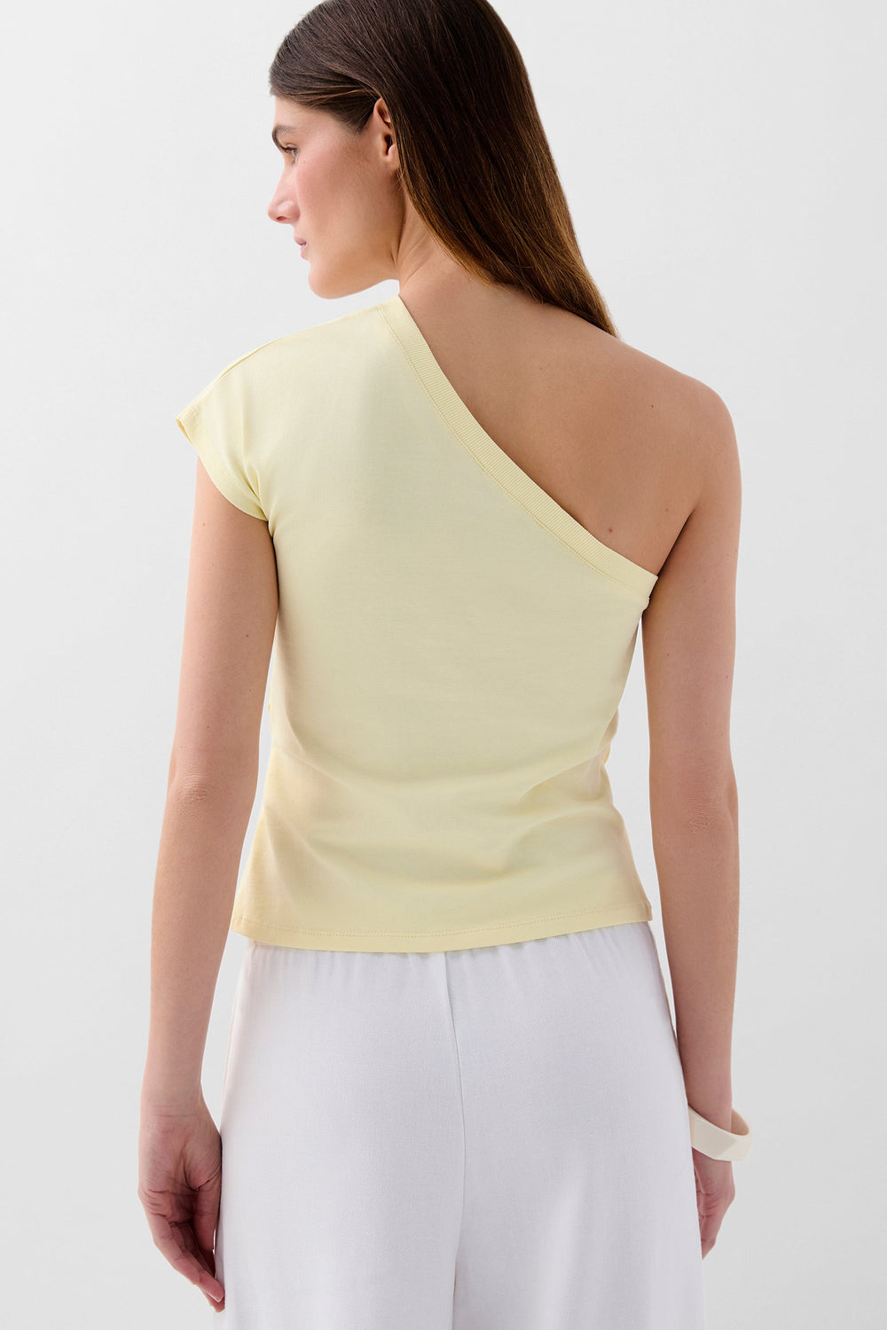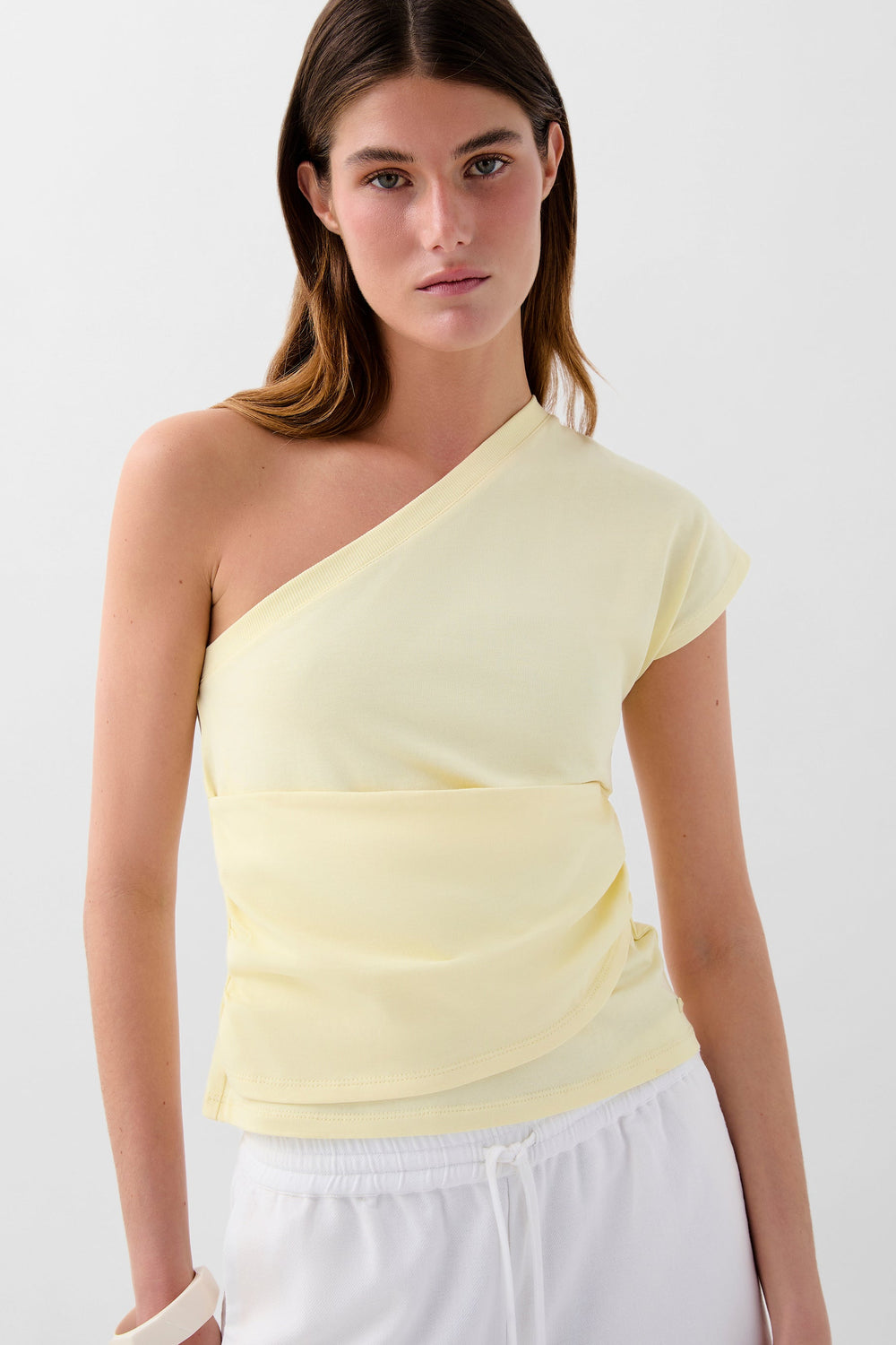 Top made in 100% cotton with asymmetric neckline, gathered at the waist and armhole.