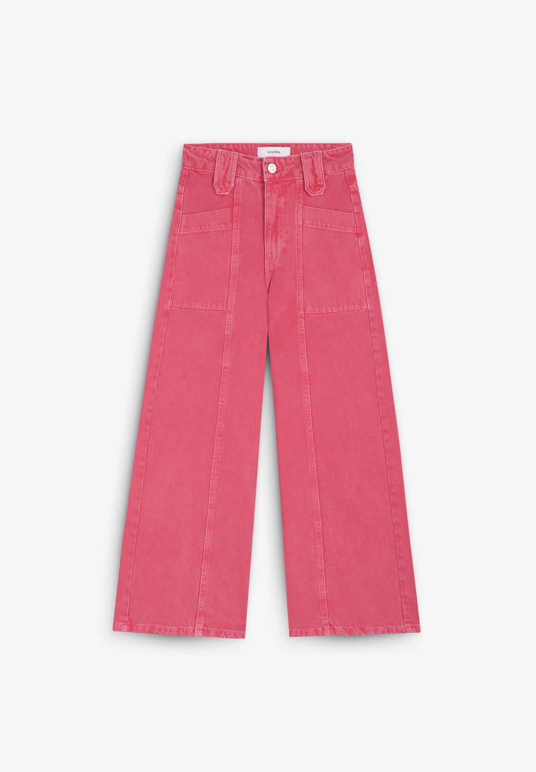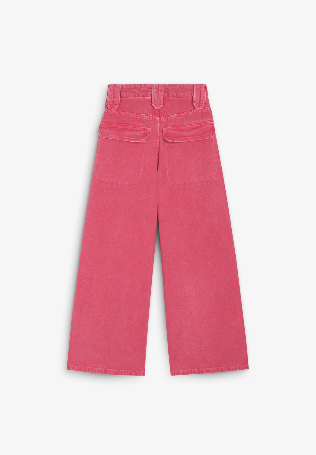 Culottes made of 100% organic BCI cotton. Two front pockets. Two back pockets with flaps. Seams detail. Faded effect. Button and zip front fastening.