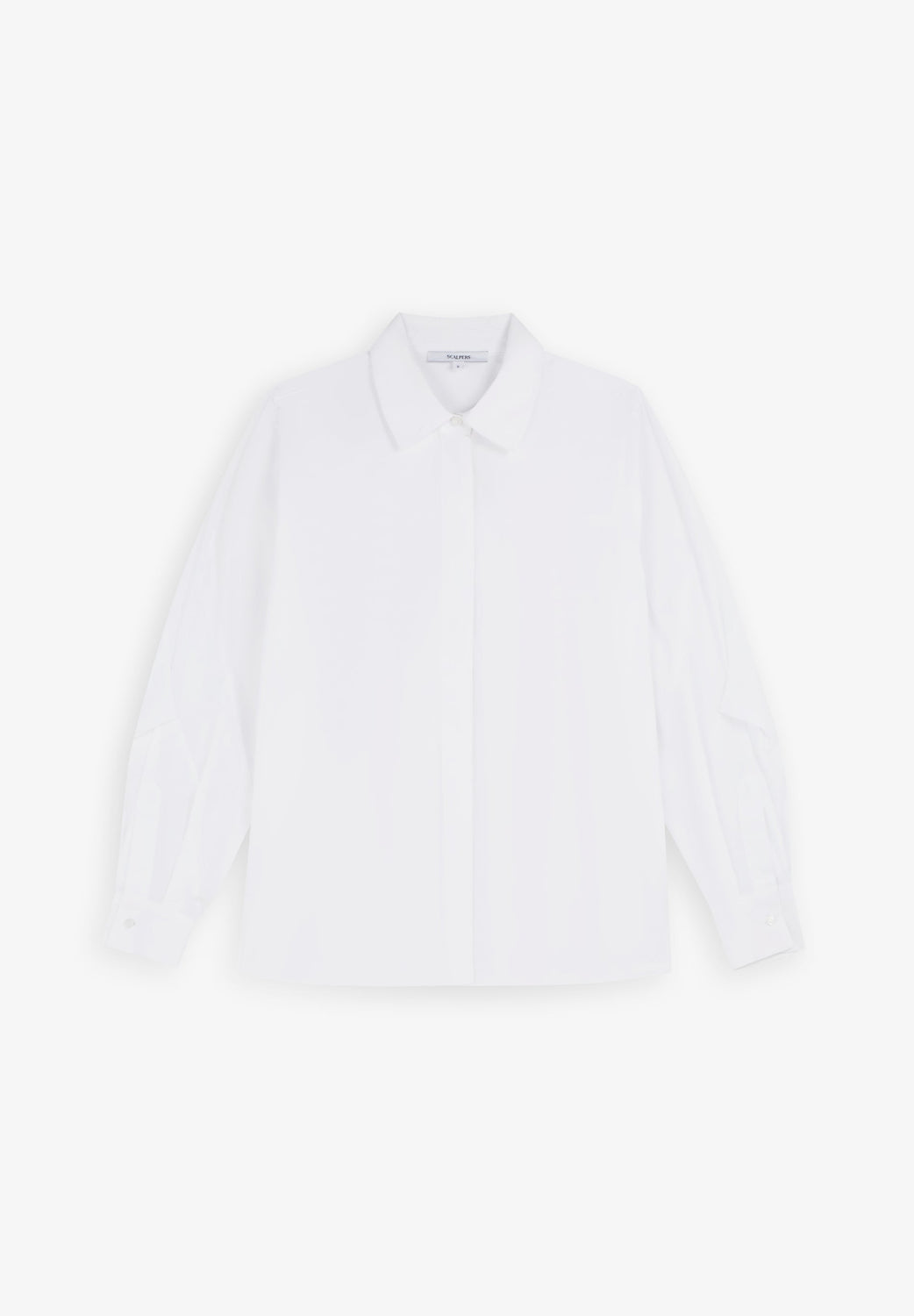 Shirt made of 100% cotton. Regular fit, classic collar and button fastening. Long puffed sleeves with pleated details.
