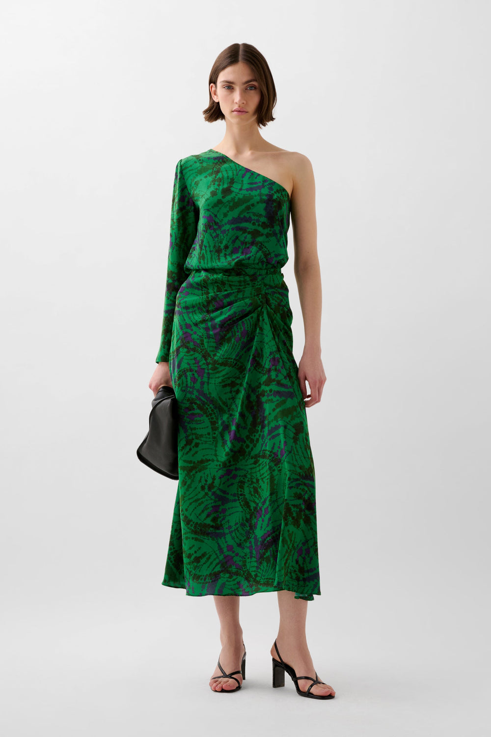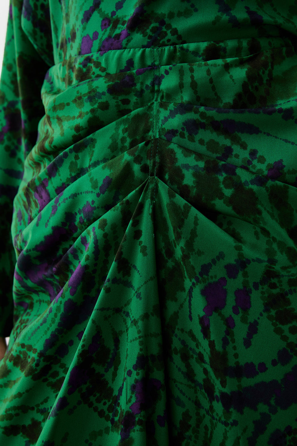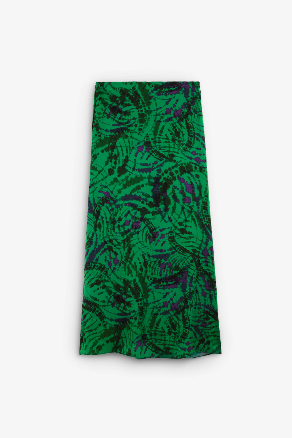 Printed midi skirt made of flowing fabric. Regular fit, concealed zip fastening and front draped details.