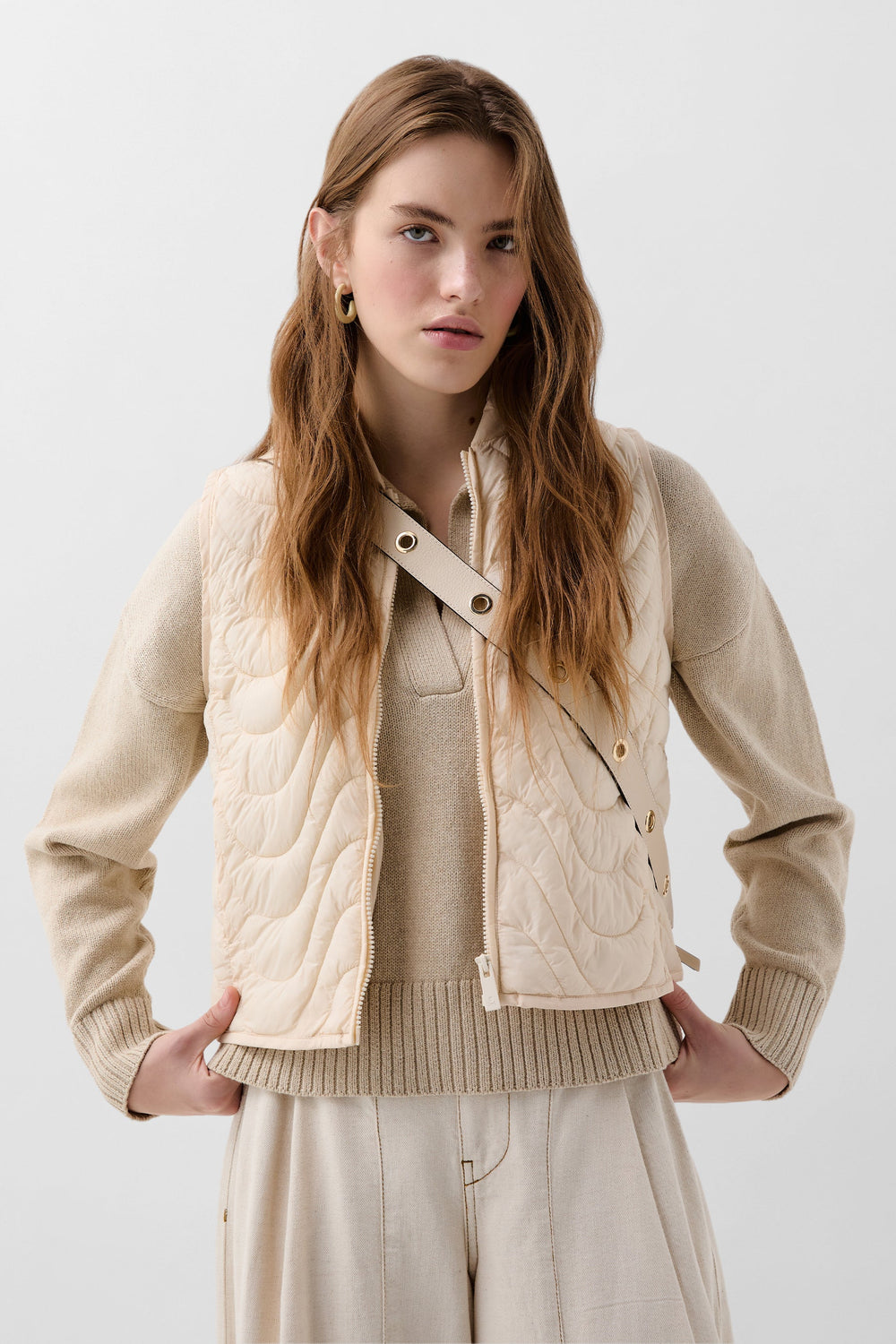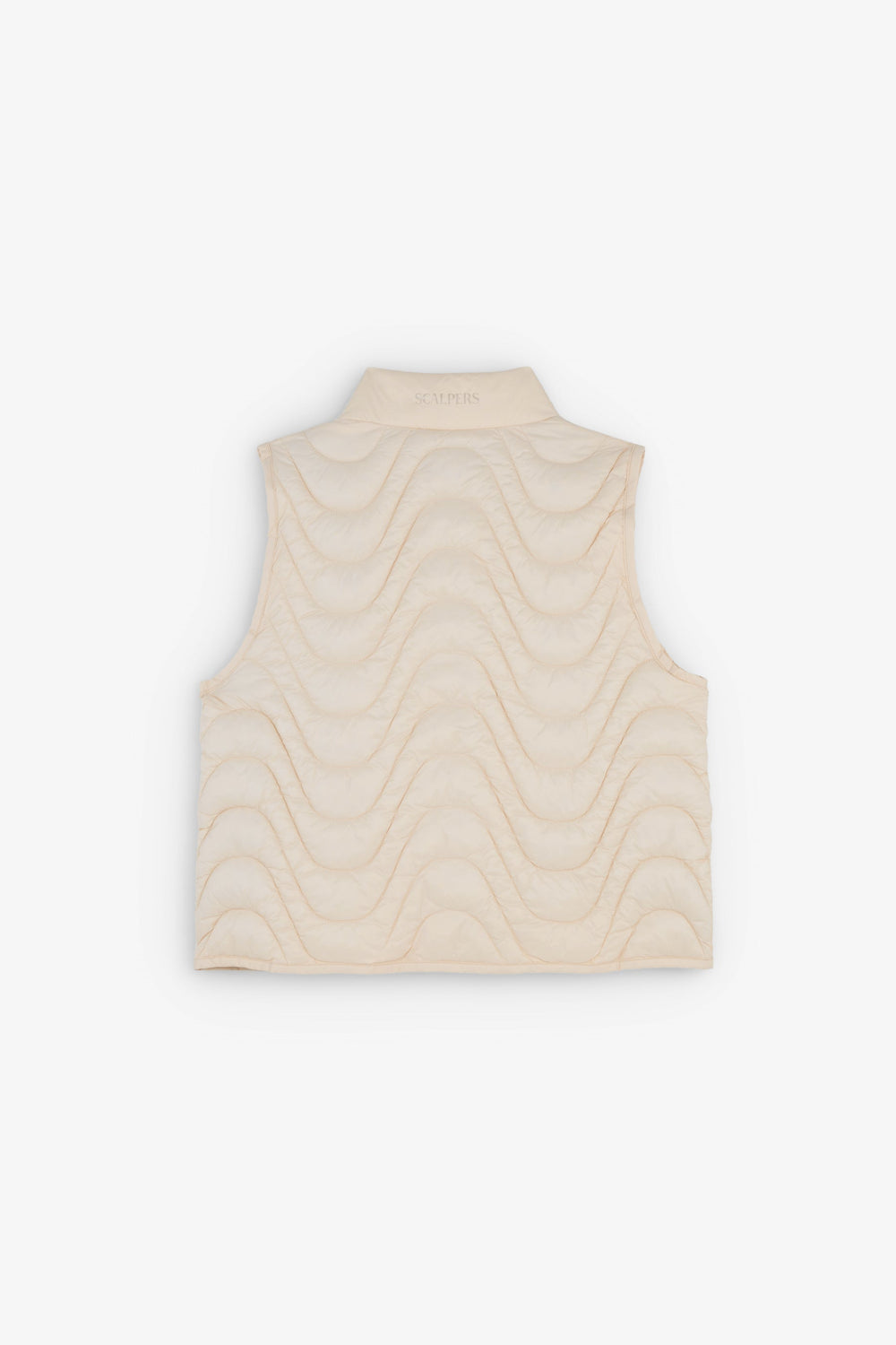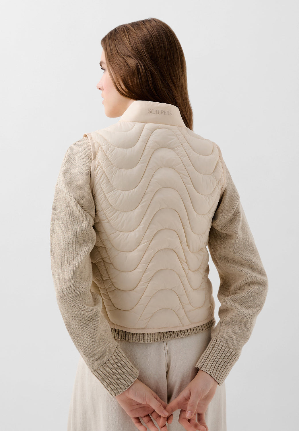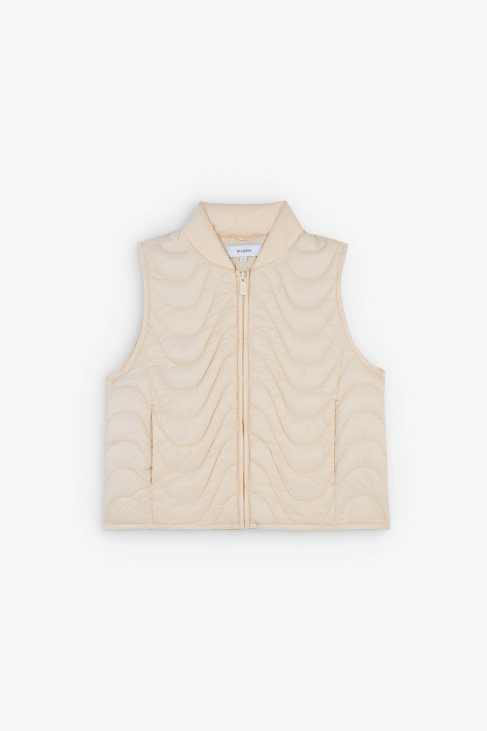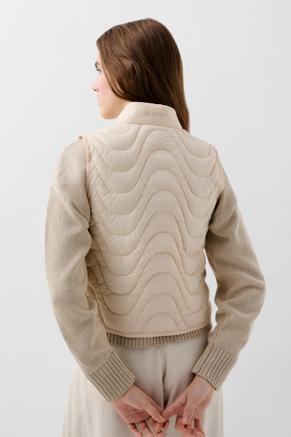 Quilted gilet made of technical fabric. Slim fit, high collar and zip fastening. Side pockets.