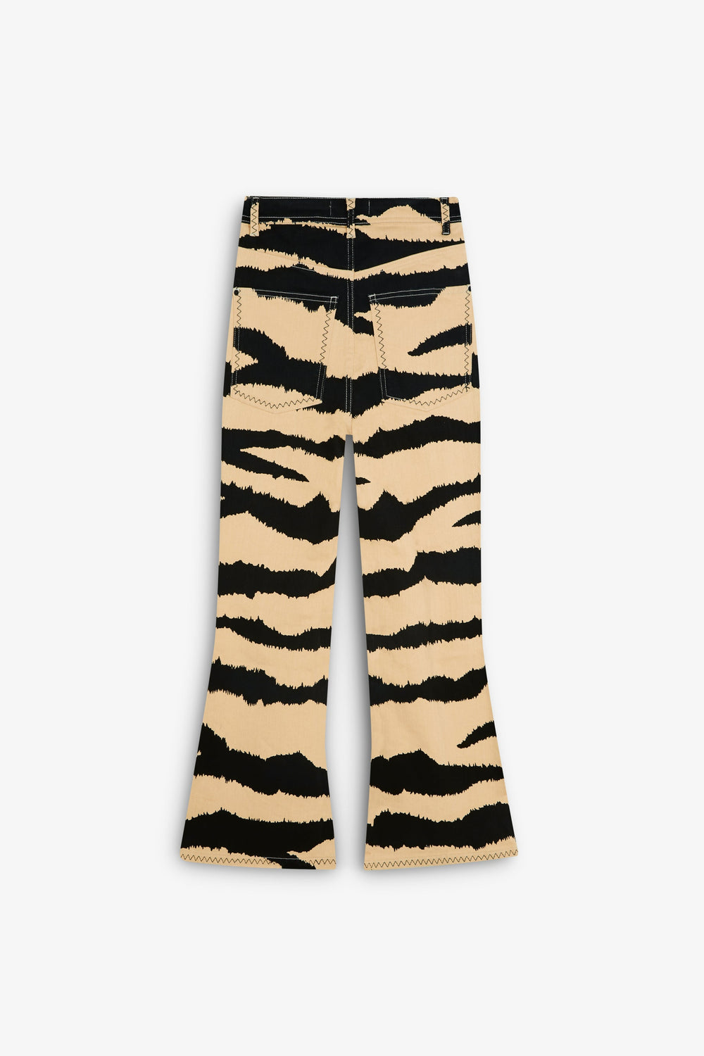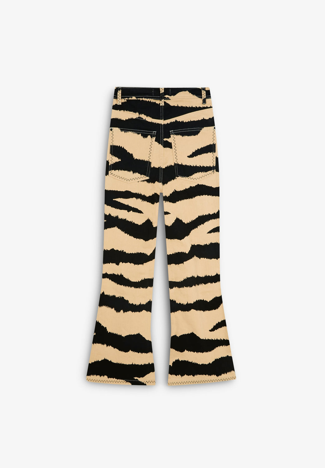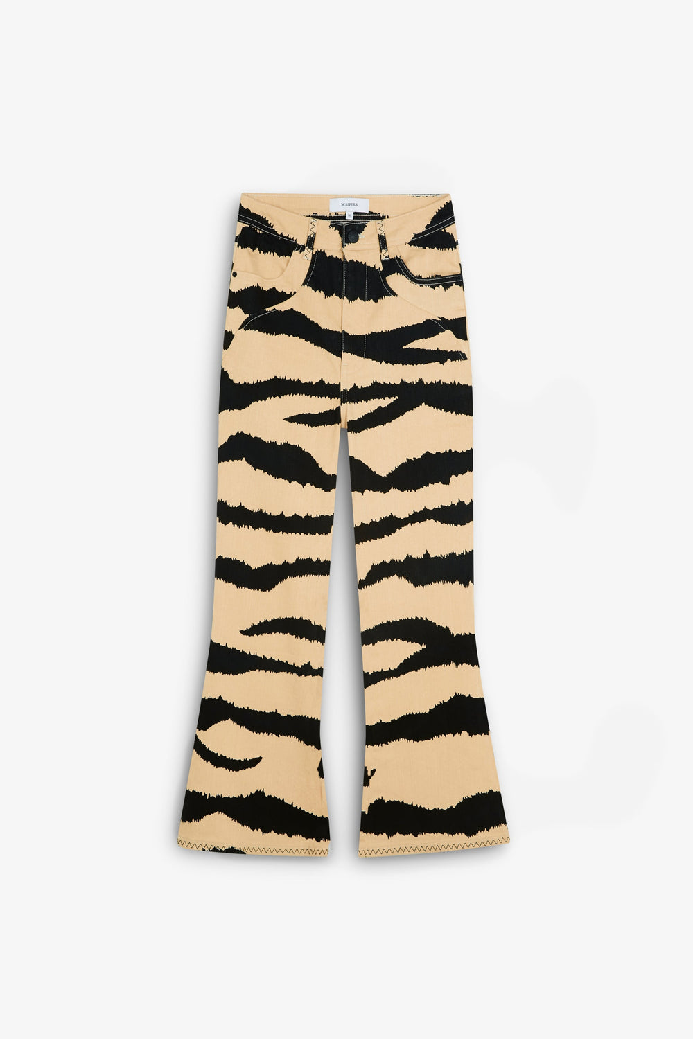 Jeans with zebra print made of slightly stretchy cotton blend. Ankle flare with a medium waist, button and zip fly fastening and belt loops at the waist. Front and back pockets and hem with visible stitching.