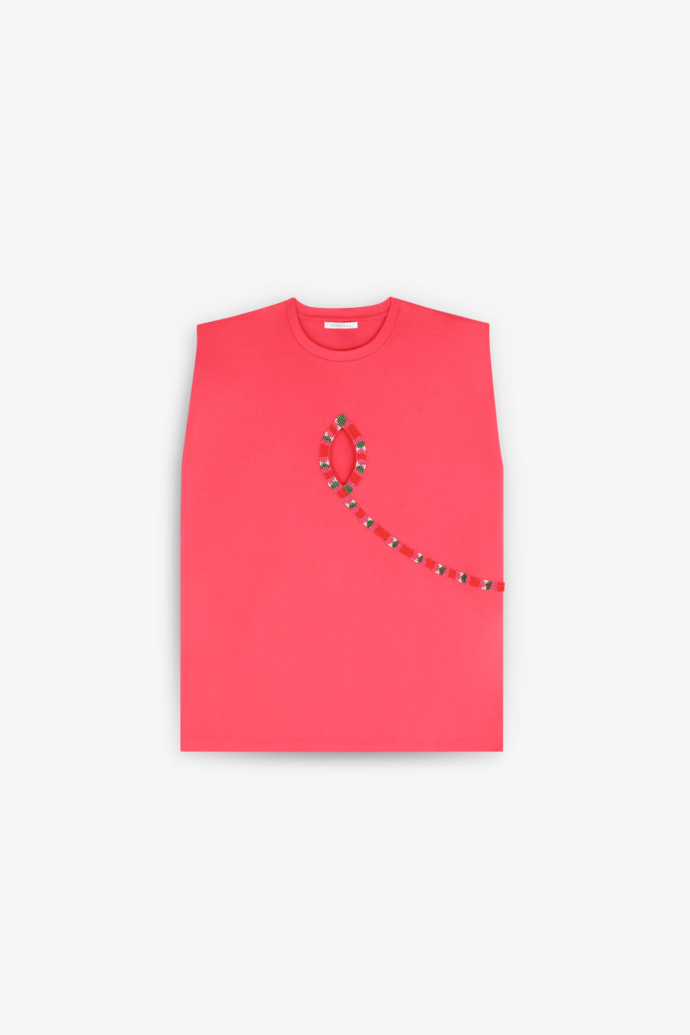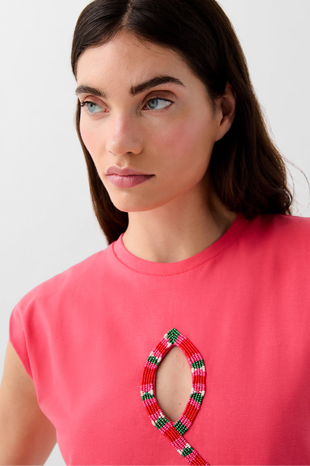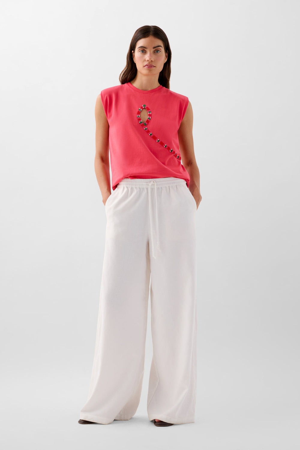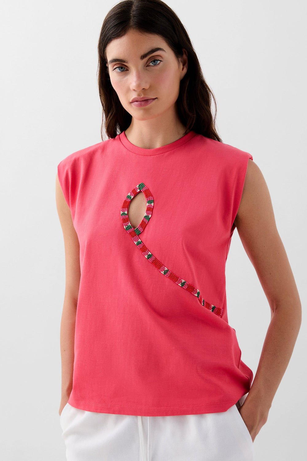 T-shirt made of 100% cotton with a slit detail on the chest. Regular fit, round neck and sleeveless.