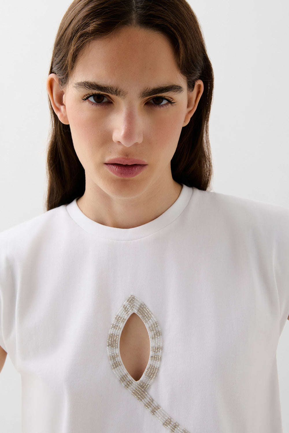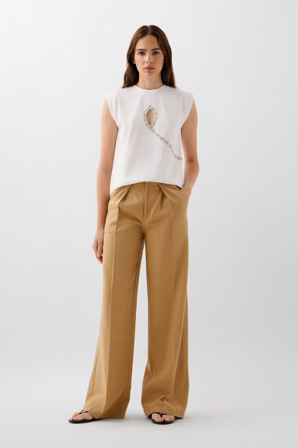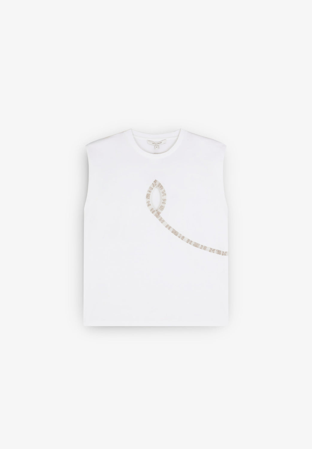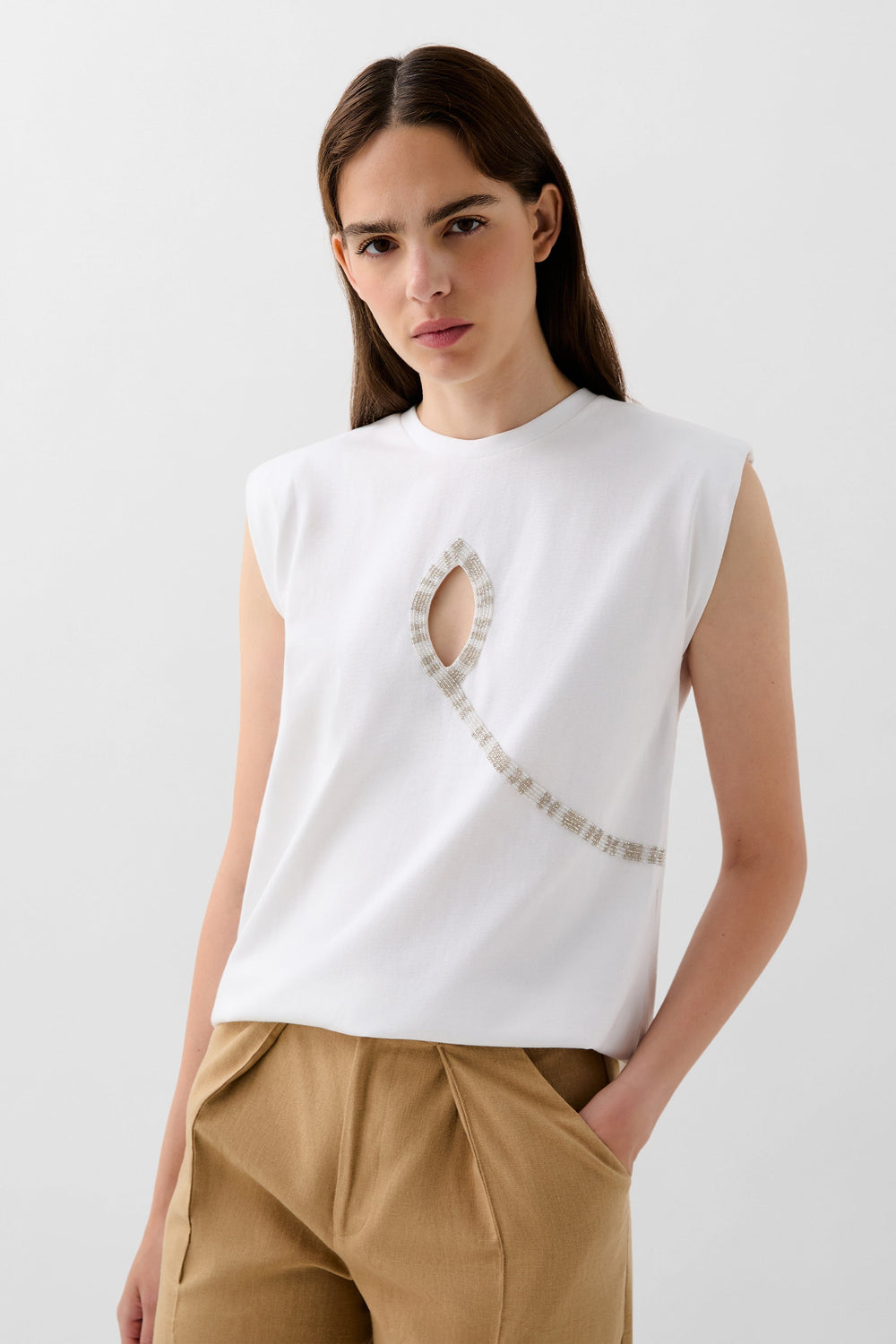 T-shirt made of 100% cotton with a slit detail on the chest. Regular fit, round neck and sleeveless.