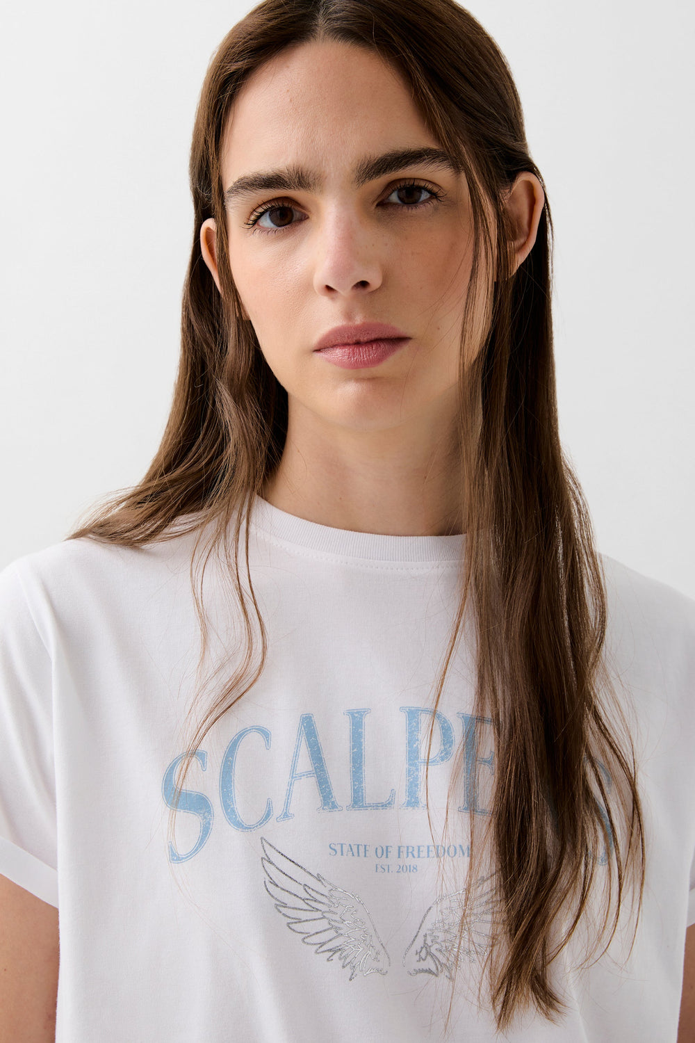 T-shirt made of 100% cotton. Regular fit, round neck and short sleeves. Front print on chest.