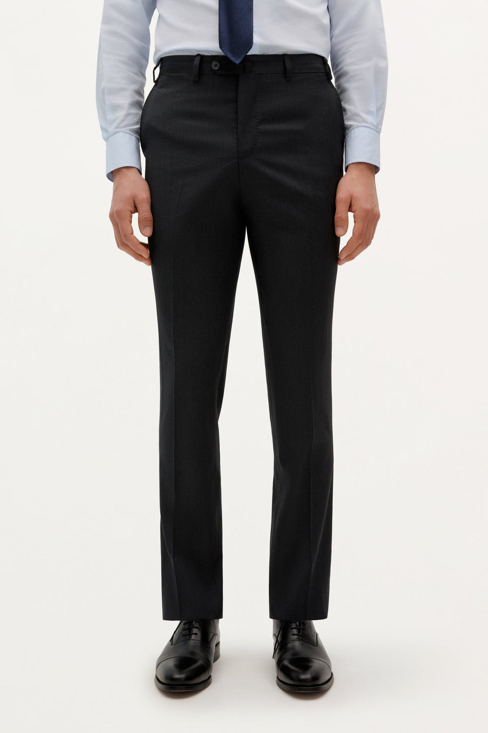 Trousers made of 100% Italian wool. Fastens with concealed zip, hook-and-eye fastening and buttoned placket. Two side pockets. Buttoned buttonhole pocket at the back. Made in Portugal.